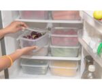 SPACE-EFFICIENT: Uniform rectangular shape with stackable design maximises vertical storage space in your refrigerator, creating organised storage levels