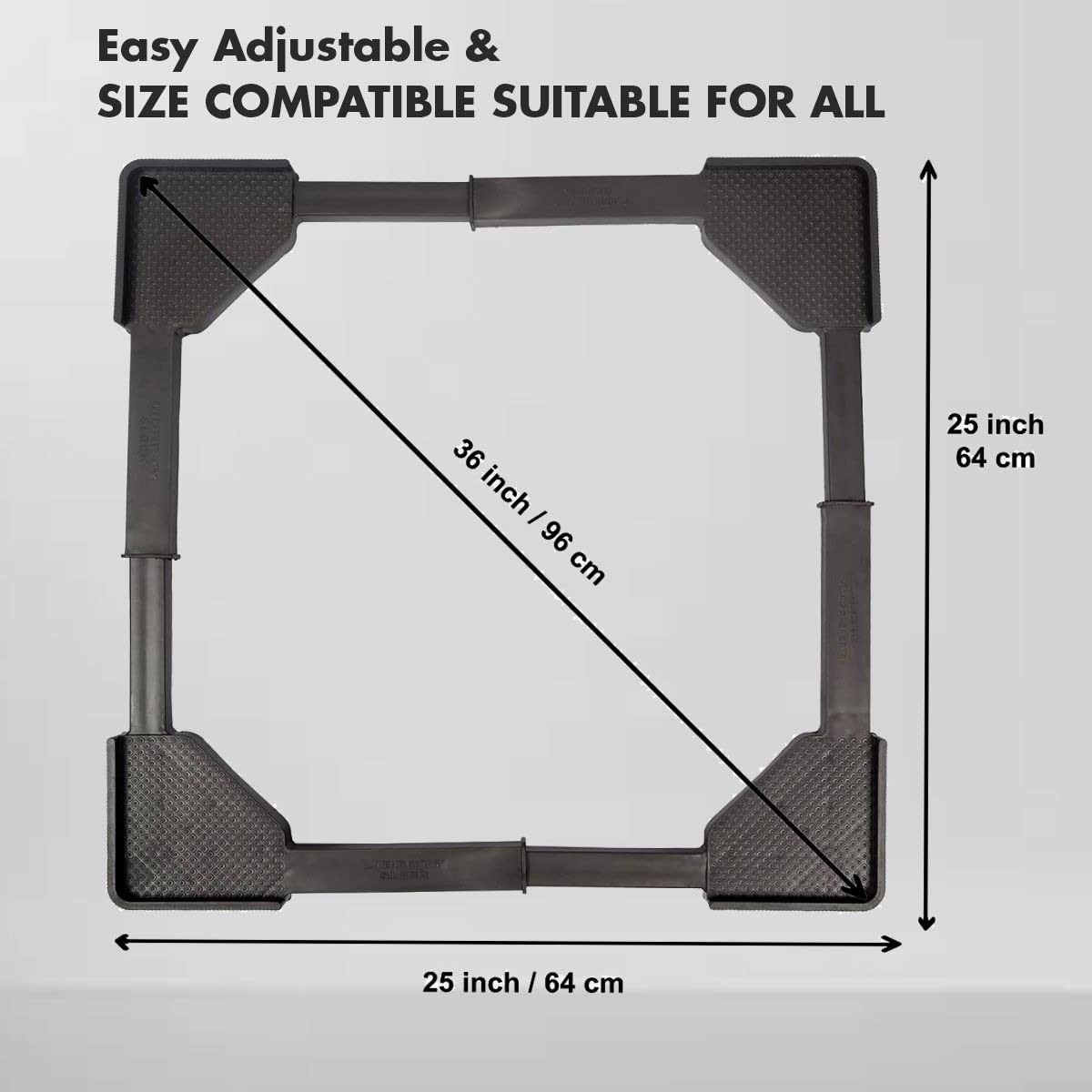 Adjustable Base Size: size can be adjusted. Min – 20 inch x 20 inch | Max – 25 inch x 25 inch, Height – 4 inches. Please measure your machine’s size first when you order!