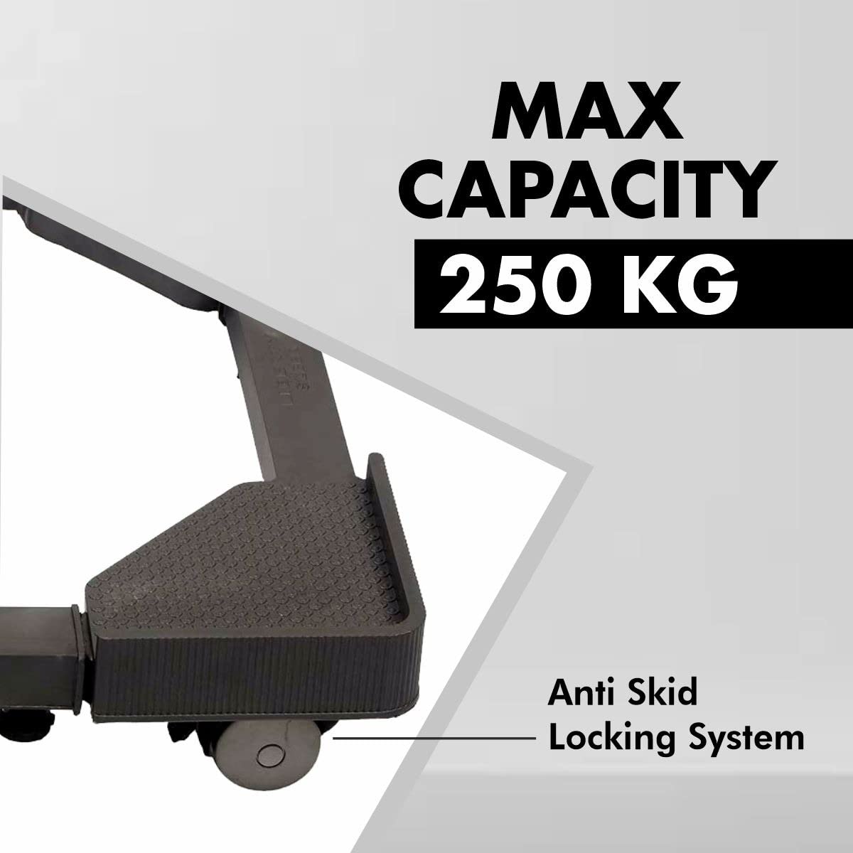 Equipped with 360° Rotatable Wheels, this trolley comes with front lockable castors so that you can easily manage your appliance from one place to another. Each wheel is paired with a metal bracket, ensuring superior strength and weight-bearing capability. These wheels enable smooth and effortless mobility across various floor surfaces, allowing you to relocate heavy appliances with minimal effort. The heavy-duty design ensures longevity and reliability, making it an ideal choice for managing large and weighty appliances in your home.