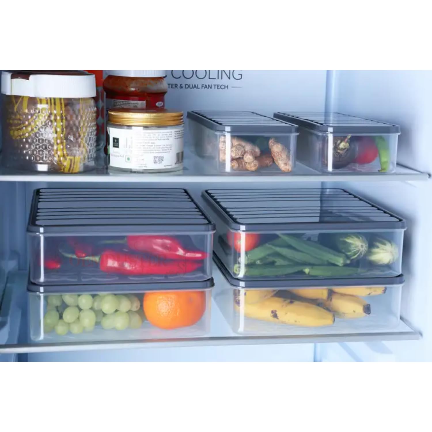 Each container measures 28 cm (L) x 11 cm (W) x 6 cm (H), offering the ideal balance between compact design and generous storage. Whether it’s rice, pulses, or cut fruits, it fits easily into your fridge, pantry, or kitchen shelf.
