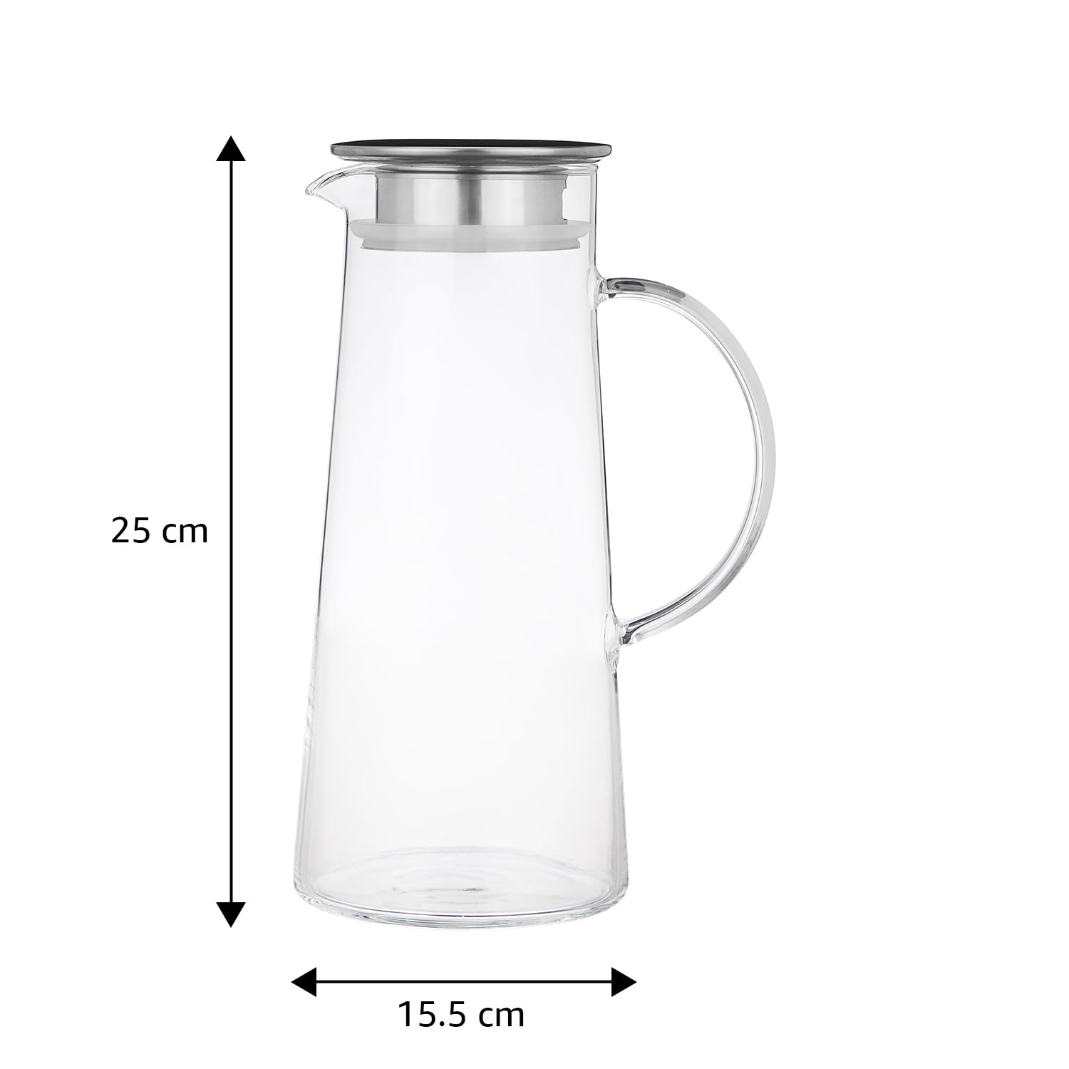 Amazon Basics Borosilicate Glass Jug 1370ml – Versatile Serving Companion | Ideal for Large Gatherings | Multipurpose Jug | Secure Handle for Easy Pouring | Sleek Modern Design