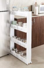 Package Contents:- 1 x 4 Layer Slim Side Space Saving Storage Organiser With Wheels