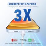【 Compatibility】: USB-C to iPhone cable supports PD Fast Charge 3A (max) for iPhone 14/14 Pro/14 Pro Max/14 Plus/ iPhone 13/13 Pro/13 Pro Max/13mini/iPhone 12/12 Mini/12 Pro/12 Pro Max/11/11 Pro/11 Pro Max/XS Max/XS/XR/X/8 Plus/8 and iPad 8th iPad 2020, iPad Pro 12.9″ gen1/ gen2/iPad Pro 10.5″/iPad Air3 10.5″/iPad mini5 7.9″; Note: You need a USB-C port wall charger to achieve fast charging.