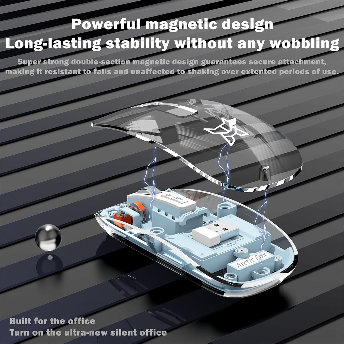 BUILT IN RECHARGEABLE BATTERY :: The AF transparent mouse features a built in high-performance rechargeable 400 mAh battery, providing an impressive 30 days of usage on a full charge. The automatic hibernation mode minimizes power consumption, effortlessly awakening with a simple button click.