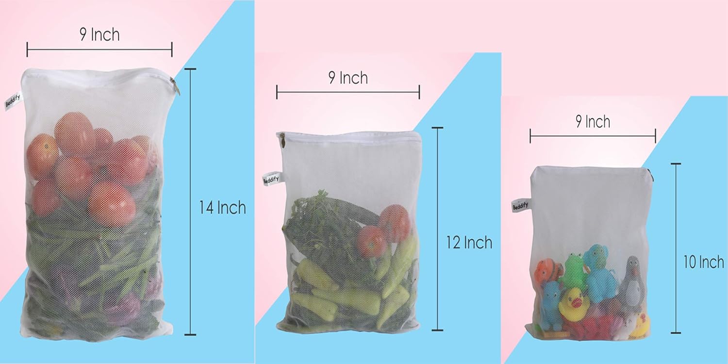 10 reviews for Beddify Set of 12 Reusable Fridge Storage Bags for Vegetables and Fruits with Zipper Dual Layer Mesh Net Multipurpose Multi-Size Kitchen Storage Bags Organizer (White)