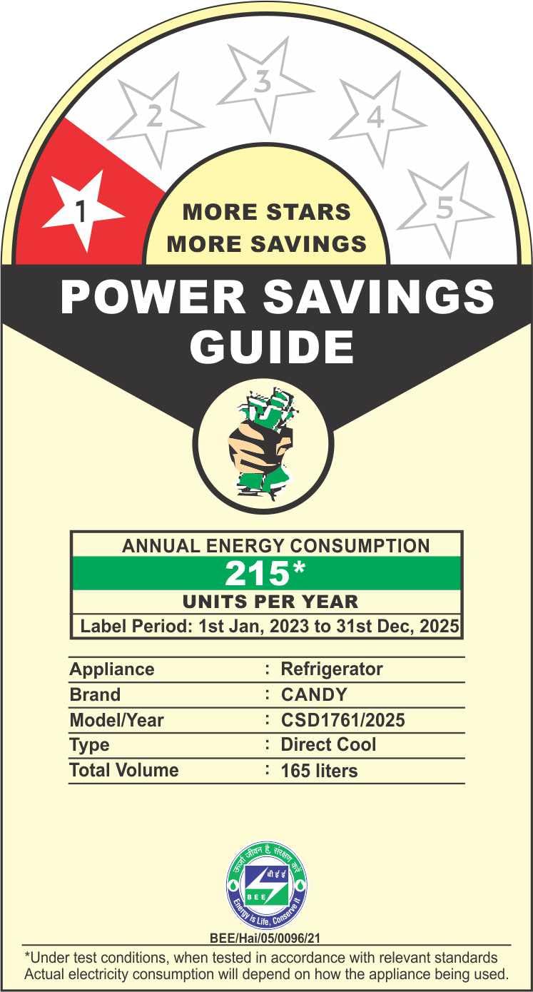 Energy Efficiency: 1 star : Best Energy Efficiency (Please refer energy label on product page or contact brand for more details)