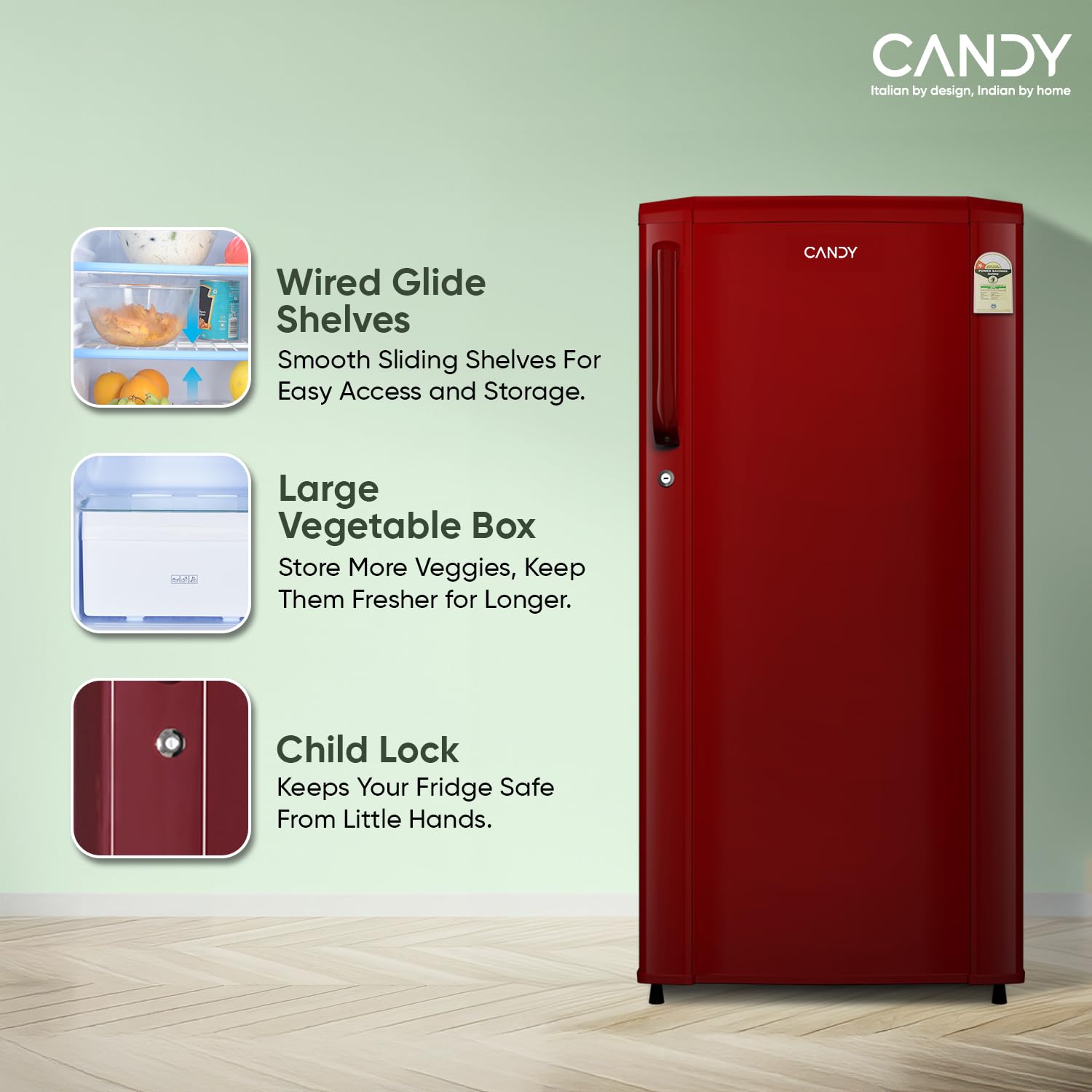 CANDY 165L 1 Star Direct Cool Single Door Refrigerator with Stabilizer free Operation (Red Mono, CSD1761RM)