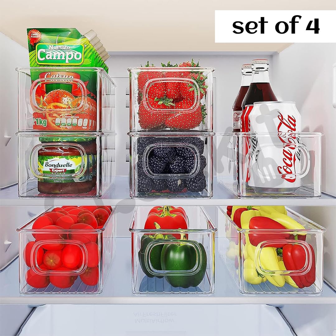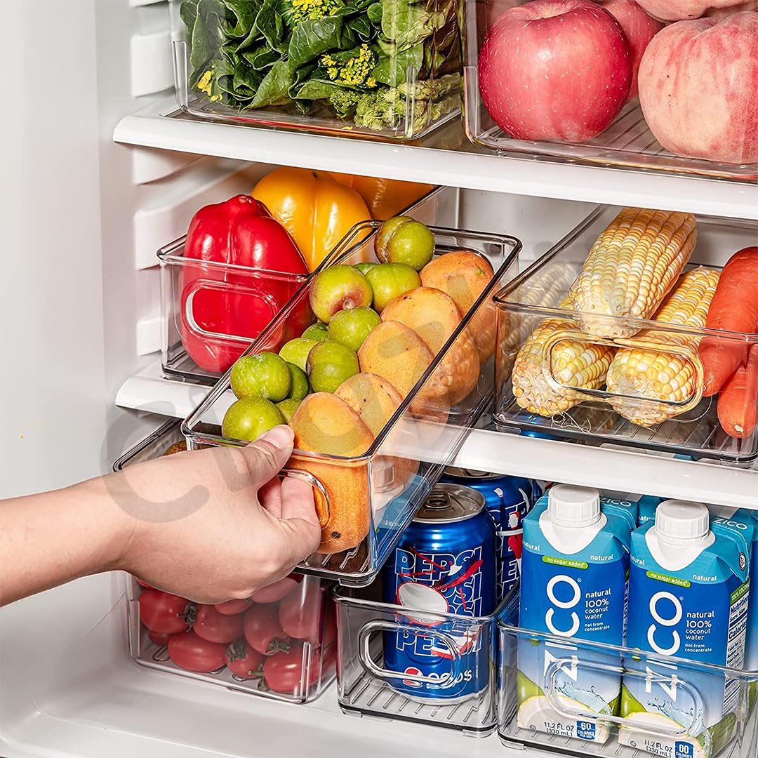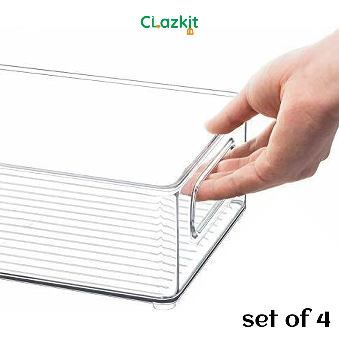 Clazkit Acrylic Fridge Organiser | Fridge Storage Boxes | Refrigerator Storage Containers | Pack of 4| For Vegetable, Fruits Etc | Size-10″x 4″ x 3.0″ | Transparent