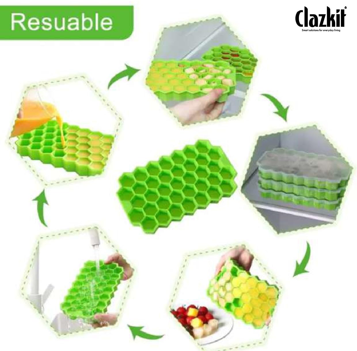 Good quality trays. Silicon material is very flexible and allows the ice to come out easily without breaking at the corners. Gives perfect hexagons.Cons – size of ice is small so more ice needs to be added.