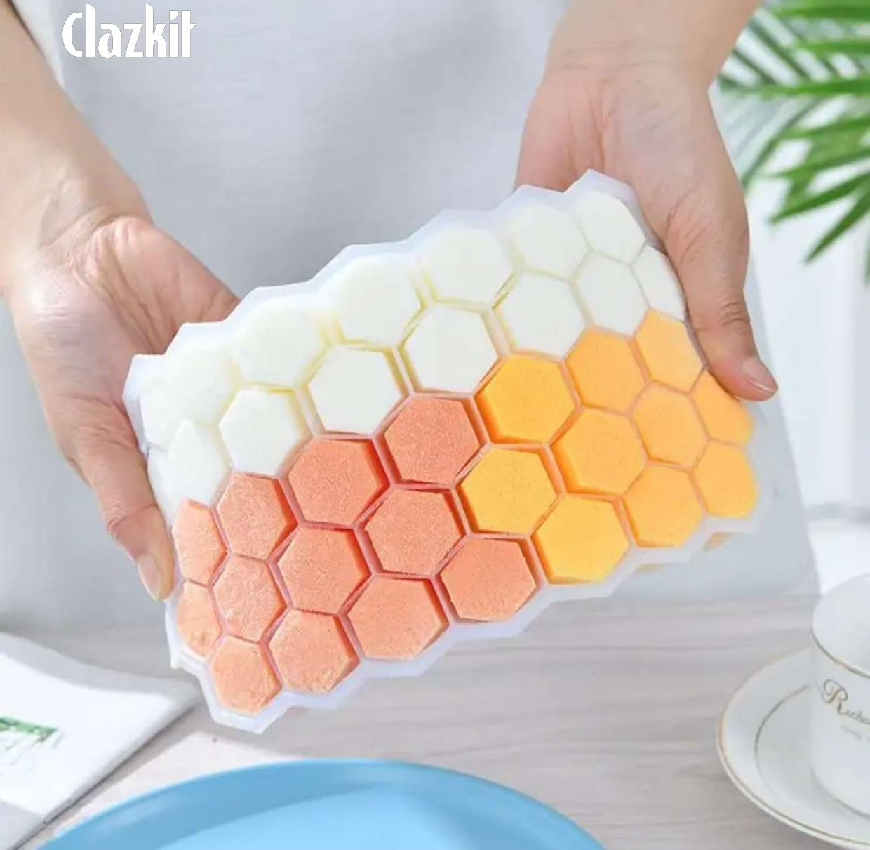 Clazkit Flexible Silicone Honeycomb 37 Cavity Ice Cube Tray for Freezer Moulds Small Cubes Whiskey Fridge Bar Soft Ice Cube Tray -Color May Vary-Pack of 2