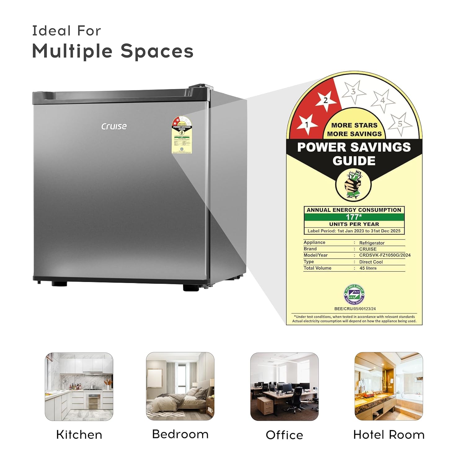 Cruise 45 L 2 Star Compact Minibar Refrigerator with Freezer Compartment – Direct Cool Technology (Single Door, Graphite Grey, CRDSVK-FZ1050G)