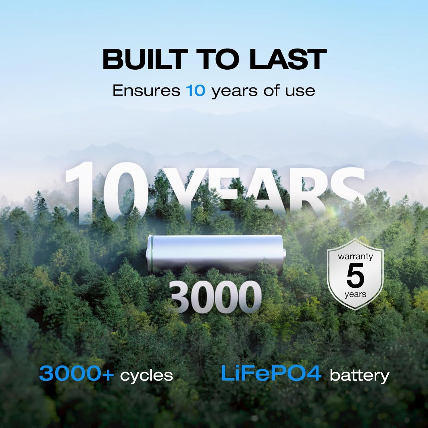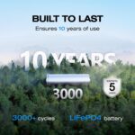 [LFP Long-Life Battery] – Using LFP battery cells, use and recharge RIVER 2 Pro more than 3000 times before hitting 80%. That’s almost 10 years of regular use. RIVER 2 Pro includes advanced BMS protection, monitoring voltage, current, and temperature to keep your LFP battery running for years.