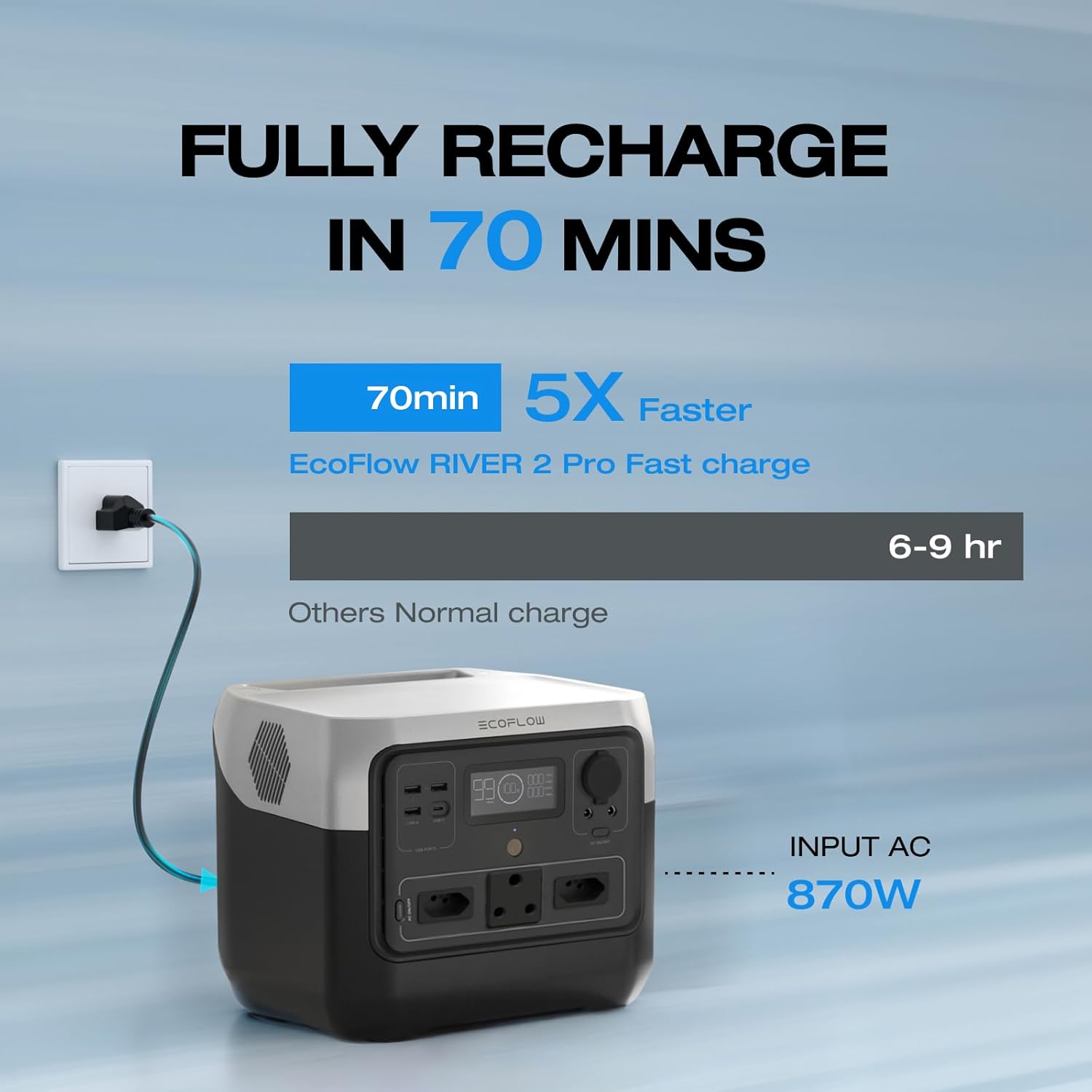 I’ve been using the EcoFlow River 2 Pro since July 2025 and I must say, it’s a highly dependable power station that suits both inverter backup for my PC and standalone power needs. Here’s my honest take after regular usage:What I Liked:Excellent Backup Performance: Seamlessly powers my workstation during outages without any hiccups. The switchover is fast and reliable.Multiple Output Options: Having AC, DC, and USB ports (including fast charging) adds great flexibility. It’s truly a universal power hub.Sturdy and Portable: Though it weighs around 10 kg, it’s compact and easy to move when needed.Quality Accessories: The provided AC charging cable is durable and fits well.Responsive App Support: The EcoFlow app is intuitive, provides real-time monitoring, and offers control features. Very handy for remote management.Great Customer Support: Seller was responsive and helpful in clarifying both pre-sale and post-sale queries.Areas for Improvement:No XT60i Input Cable Included: It’s disappointing that the solar input cable (XT60i) is not bundled and has to be bought separately.Solar Panel Compatibility Issues: Finding portable solar panels that are plug-and-play compatible in India is a challenge. EcoFlow should offer panel bundles or clearer guidance.No Battery Alert Notifications: The app doesn’t provide alerts when the battery is low or fully charged — this would be a valuable feature for automation or timely charging.No Cable Carry Case: A small case to store the cables would have made portability and cable management easier.Final Verdict:The EcoFlow River 2 Pro is an outstanding choice if you need a compact, multi-functional power station for home or field use. It delivers clean and stable power, ideal for sensitive electronics like PCs. While a few accessories and features are lacking, the overall build quality, performance, and app integration make it a solid investment.I’d recommend it to anyone looking for a reliable UPS alternative or off-grid power source, especially in areas with frequent outages.
