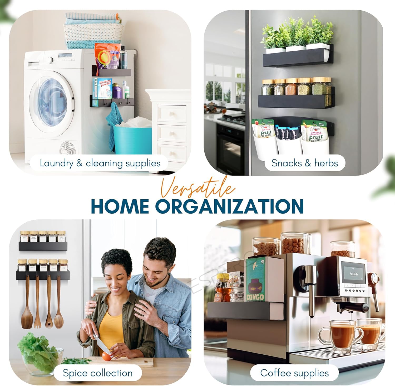 ESPERO Fridge Side Storage Rack, Magnetic Metal Shelf For Fridge, Kitchen Spice Rack Organizer for Refrigerator, Oven, Space-Saving Organizers, Multi-Use for Spices, Utensils Store (Pack Of 4)