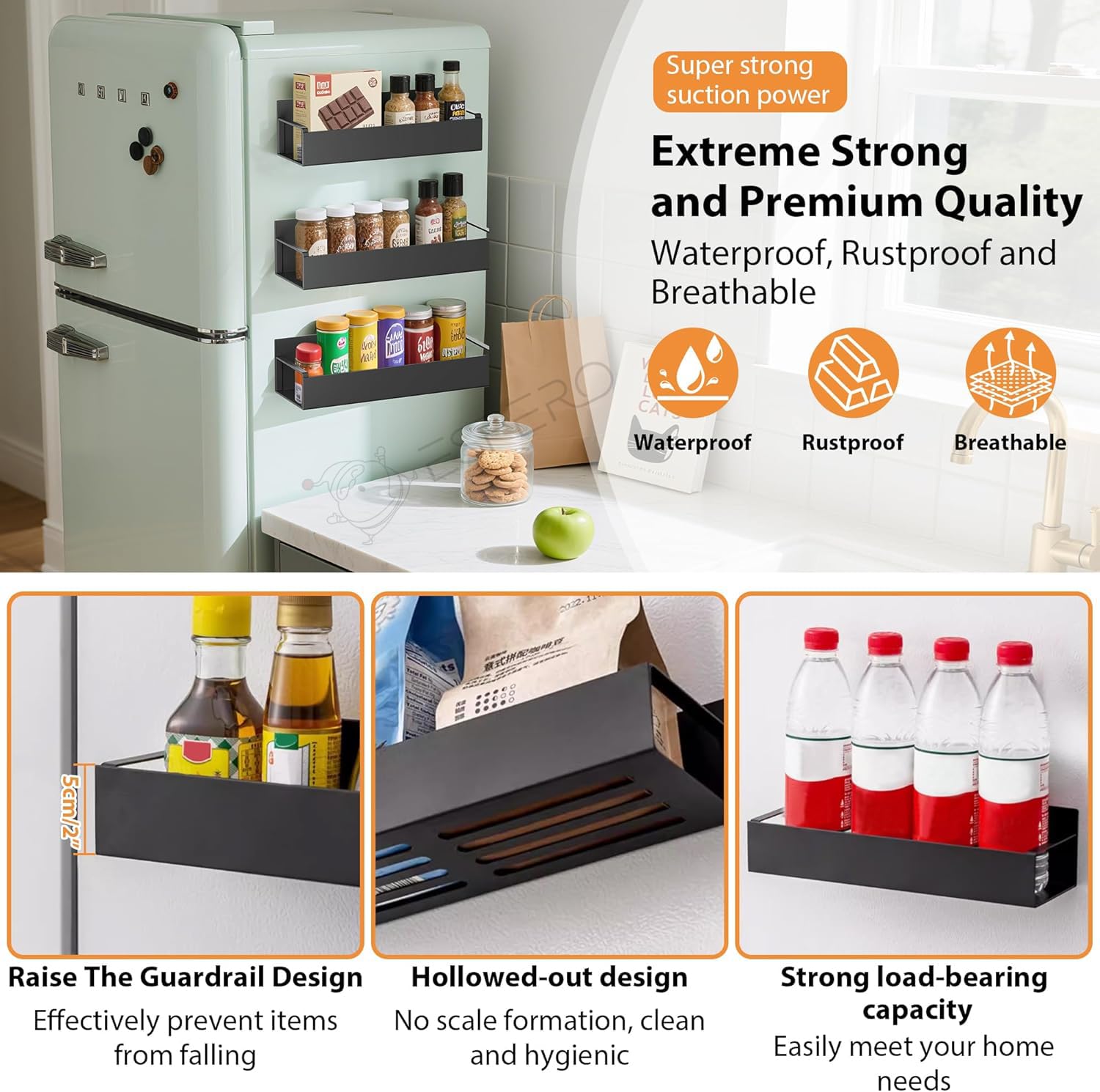 POWERFUL MAGNETIC SYSTEM: Equipped with heavy-duty magnets that provide exceptional holding power, supporting up to 3 KG of weight while maintaining a secure grip on any metal surface, offering convenient access to your spices.