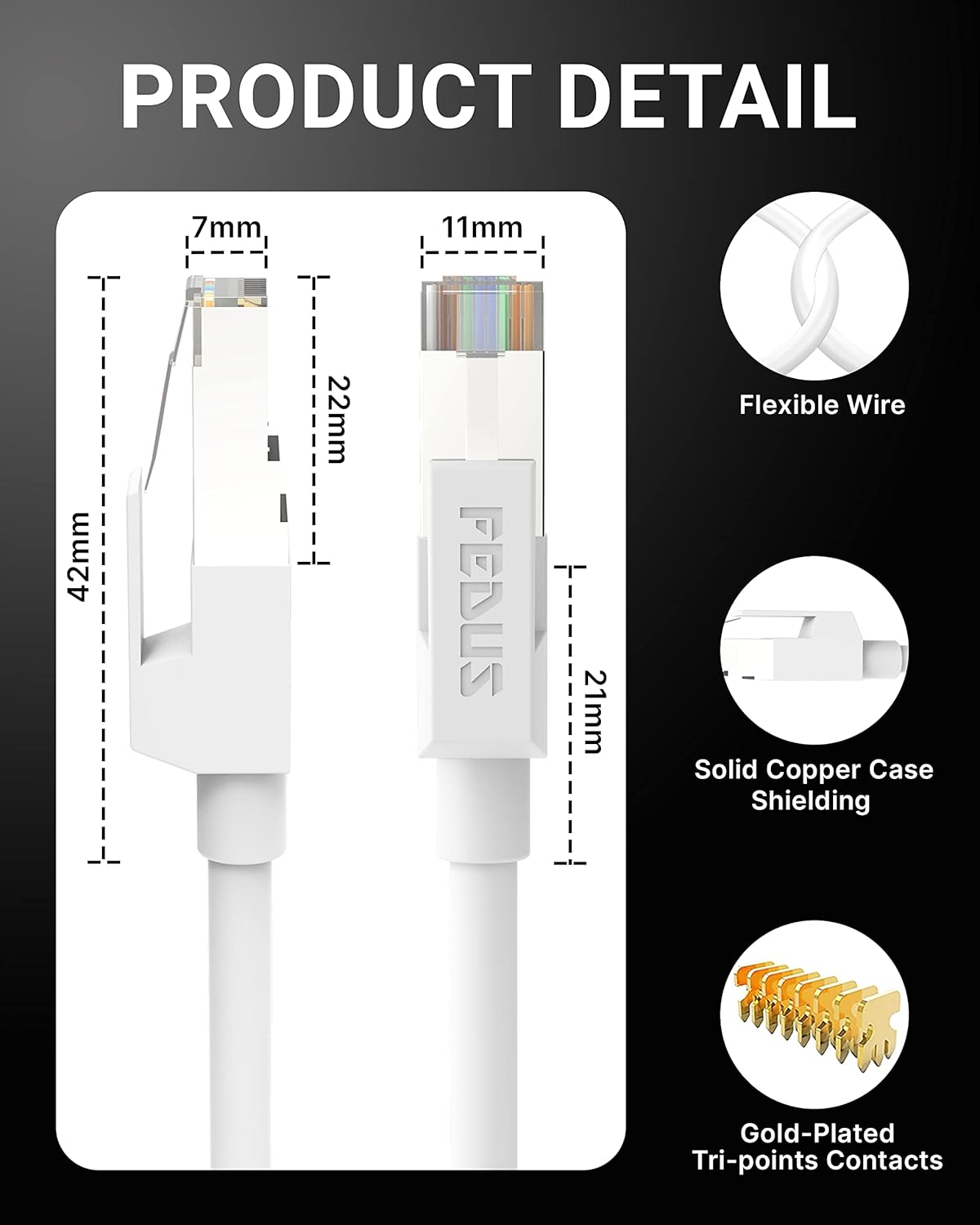 I purchased the FEDUS Cat6 Ethernet Cable (15m) and it works perfectly. The length is ideal for connecting across rooms without losing speed. The build quality is solid, and the connectors fit tightly without any issues. Internet speed is stable and consistent, making it great for streaming, gaming, and office work. At this price, it’s excellent value for money and highly recommended for anyone looking for a reliable LAN cable.