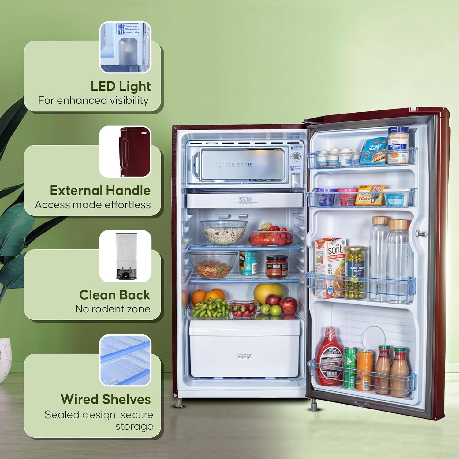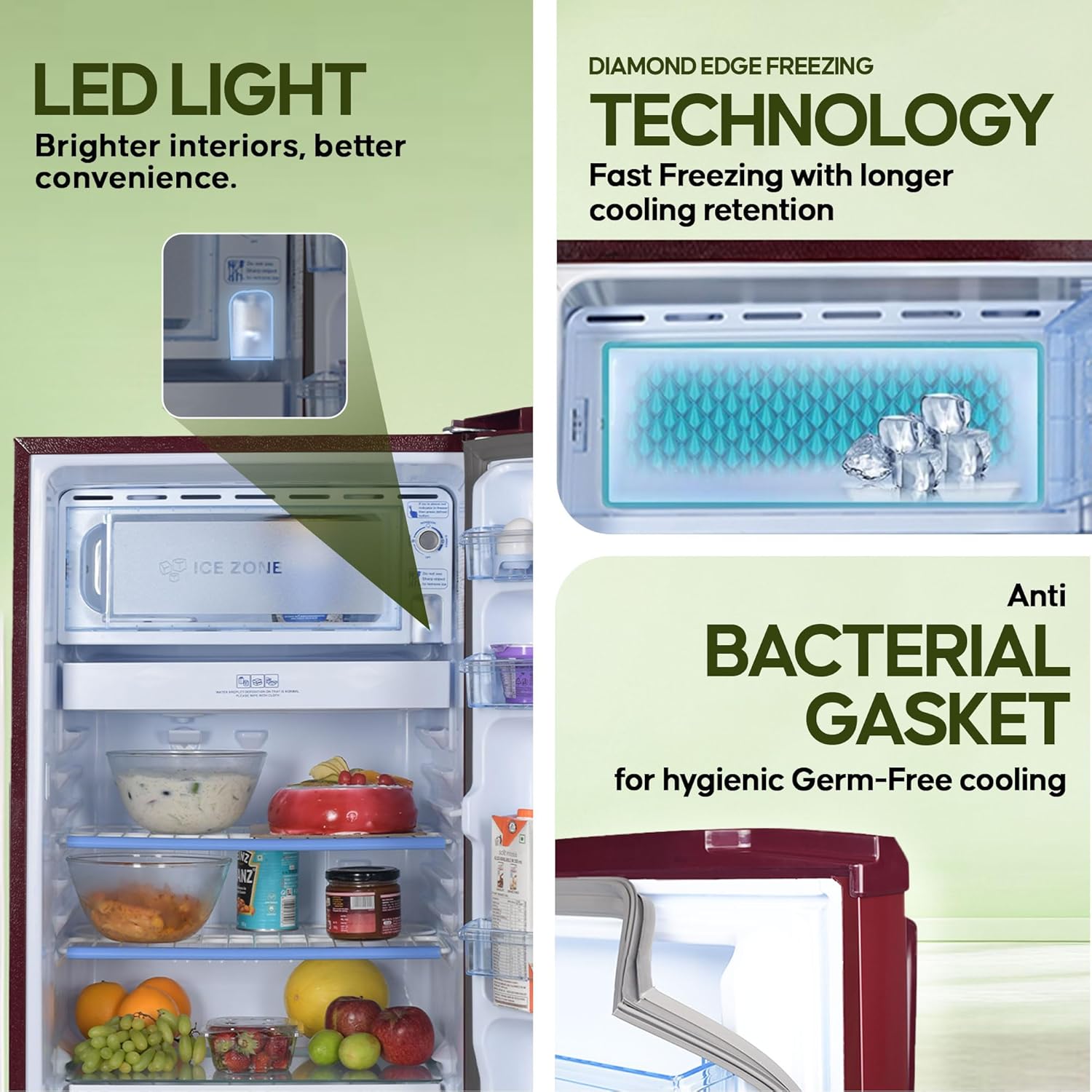 Additional Features : Easy Clean Back | Veg Box | Big Bottle Guard | LED Lamp