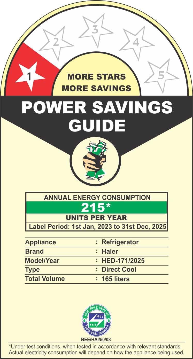 Energy Rating : 1 Star Energy Efficiency | Annual Energy Consumption : 215 Kilowatt Hours Per Year