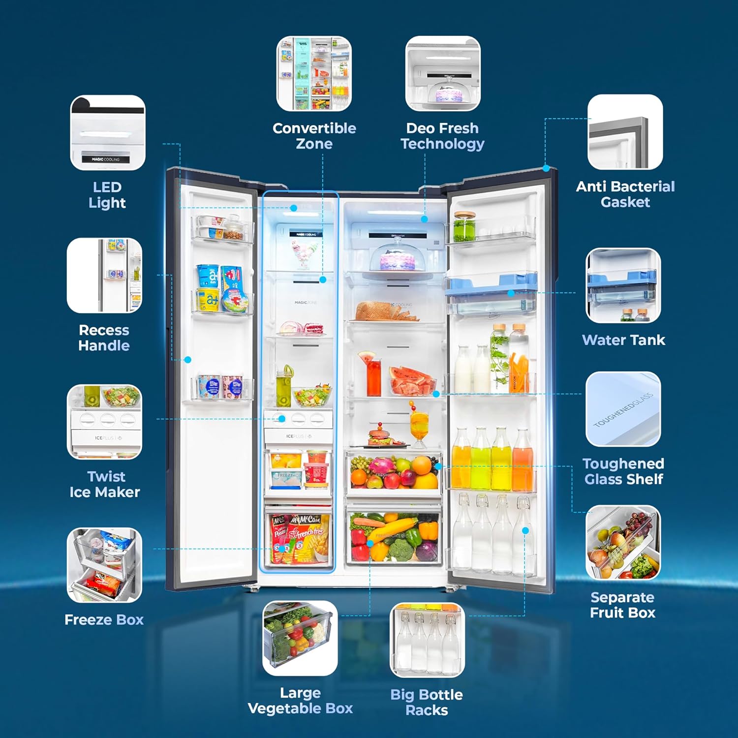 Magic Convertible Zone| Smart Sense AI |Water Dispenser | Digital Display Panel | Expert Inverter Technology | Deo Fresh Technology.