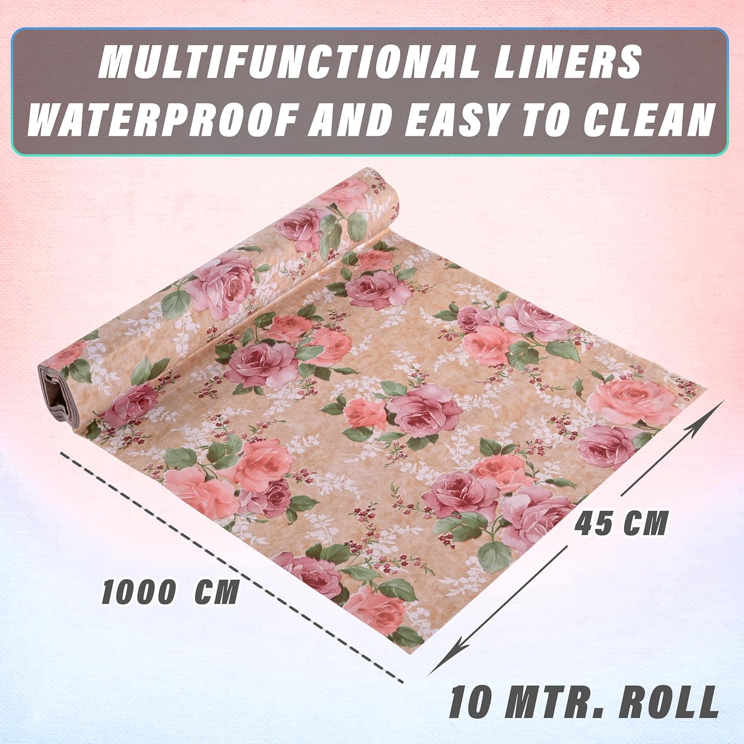 Kuber Industries Shelf Liner| PVC Kitchen Cabinet Mat | Shelf Liner for Drawer | Flower Design Wardrobe Mat | 10 Meter | Beige