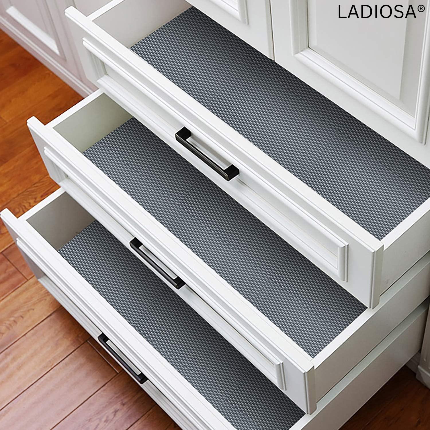 Non-Slip Grip: Ladiosa shelf liner features a textured, non-slip design, keeping items securely in place and preventing shifting or sliding.