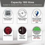 Capacity 185 liters: Suitable for families with 2 to 3 members and bachelors / couples| Freezer capacity: 16 L, Fresh food capacity: 169 L