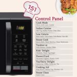 Number of Programs & Panel Information: Micro, Grill, Conv., Combi. | Indian Cuisine, Low Calorie, Steam Cook, Tandoor se, Kids Delight, Paneer/Curd, Tea/Dairy Delight, Cooking Aid, Steam Clean, +More/-Less – Used to increase/decrease the cooking time, STOP/CLEAR (ENERGY SAVING) – Used to stop oven and clear all entries. For setting energy saving feature, START/+30 seconds – The +30 seconds feature allow you to set 30 seconds intervals of HIGH power cooking with a single touch