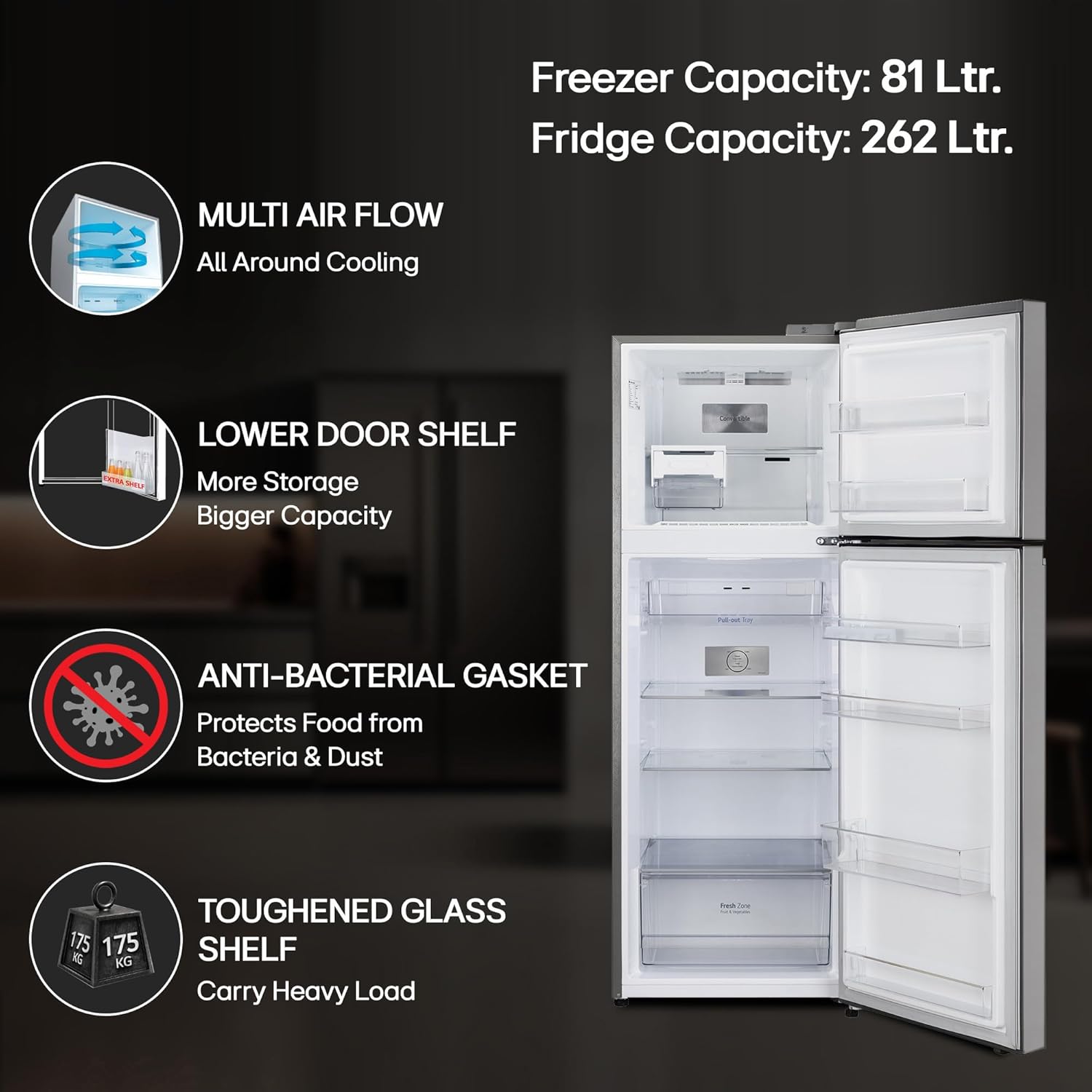 I’ve been using this LG 343L 3-star refrigerator for a year now, and it has been an excellent purchase. The fridge works flawlessly with no issues so far. One of the standout features is the alert sound when the door is left open for over a minute, which is very helpful. The partition sizes are well-designed, providing ample space for organized storage. Overall, a great fridge with efficient cooling and thoughtful features. Highly recommended!