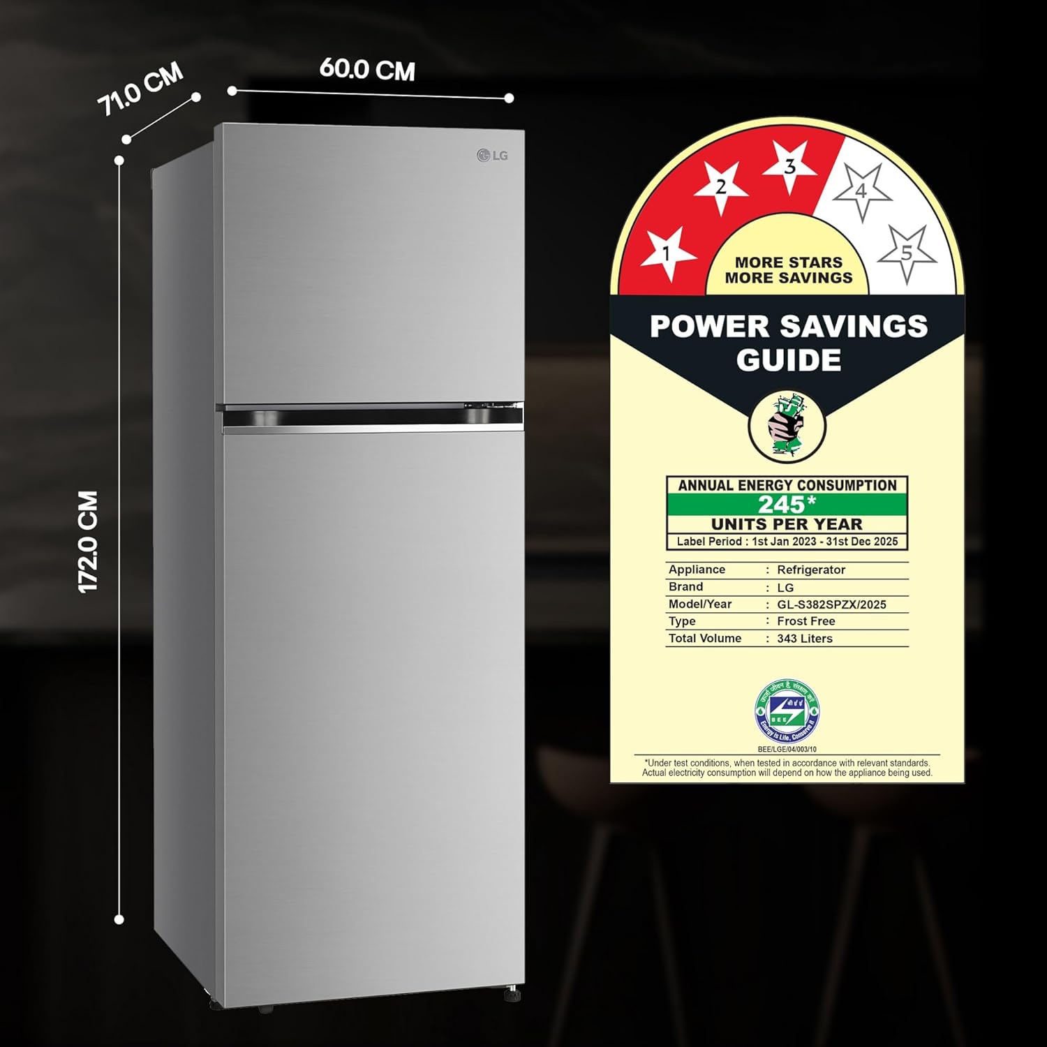 I recently purchased the LG Smart Choice 343 L 3-Star Frost-Free Smart Inverter Double Door Refrigerator (GL-S382SDSX, Dazzle Steel), and it has exceeded my expectations. The build quality is excellent, and the Dazzle Steel finish looks premium and modern.The cooling performance is impressive, and features like Convertible Mode and Express Freeze make it extremely convenient for daily use. It cools quickly, maintains temperature well, and the storage is perfectly designed for a medium to large family.The Smart Inverter Technology also helps in keeping the energy consumption low, making it efficient as well as quiet in operation.Overall, a fantastic fridge with great looks and top-notch performance. Definitely worth a 5-star rating!