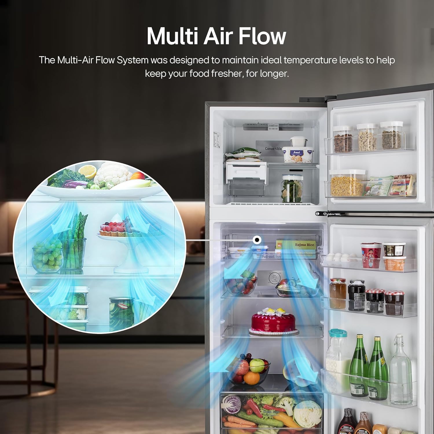 Special Features: Convertible – Freezer to fridge conversion offers you more space to suit your needs, Multi Air Flow – Distribute and circulate cool air to every corner for proper and even cooling; Temperature Control- I Micom, Express Freeze, Smart Diagnosis – Detects problem automatically