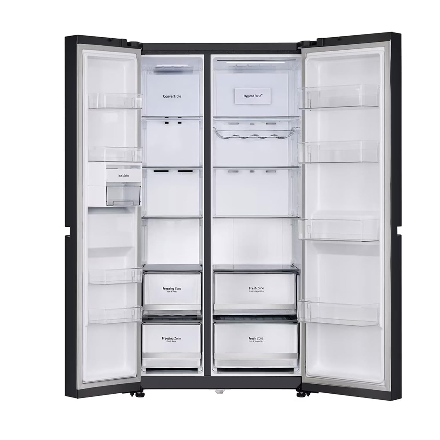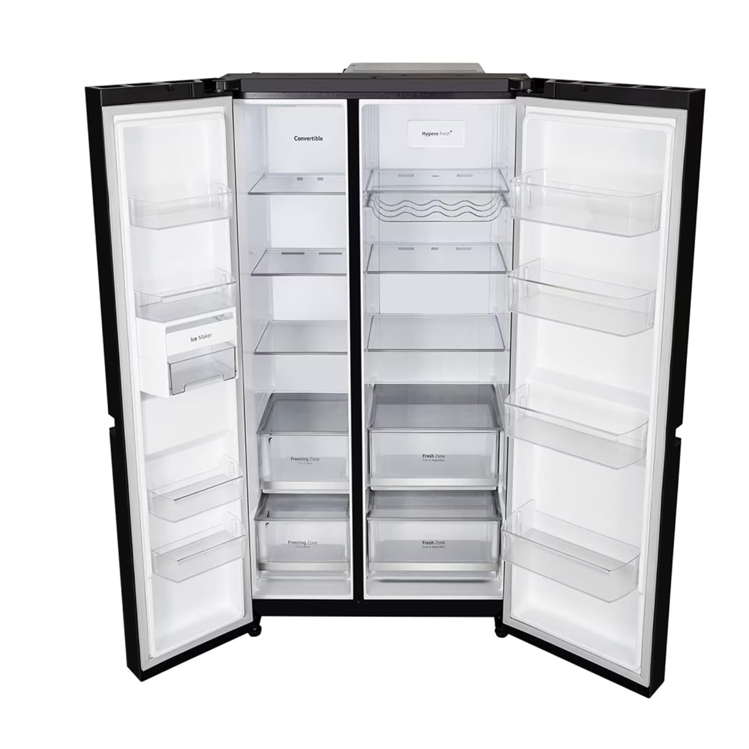 Bring home the LG 650L Side by Side Refrigerator GLB257DBM3, designed to combine elegance, performance, and smart convenience. With its Wi-Fi connectivity, you can control and monitor your refrigerator anytime through the LG ThinQ App. The DoorCooling+ technology ensures uniform cooling for long-lasting freshness, while the Smart Inverter Compressor delivers energy efficiency with powerful performance. Its 650L capacity provides ample storage for large families, and the sleek Black Mirror Finish adds a premium touch to your kitchen. With a 3-Star BEE rating (2025 Model), this refrigerator ensures energy savings while maintaining powerful cooling.