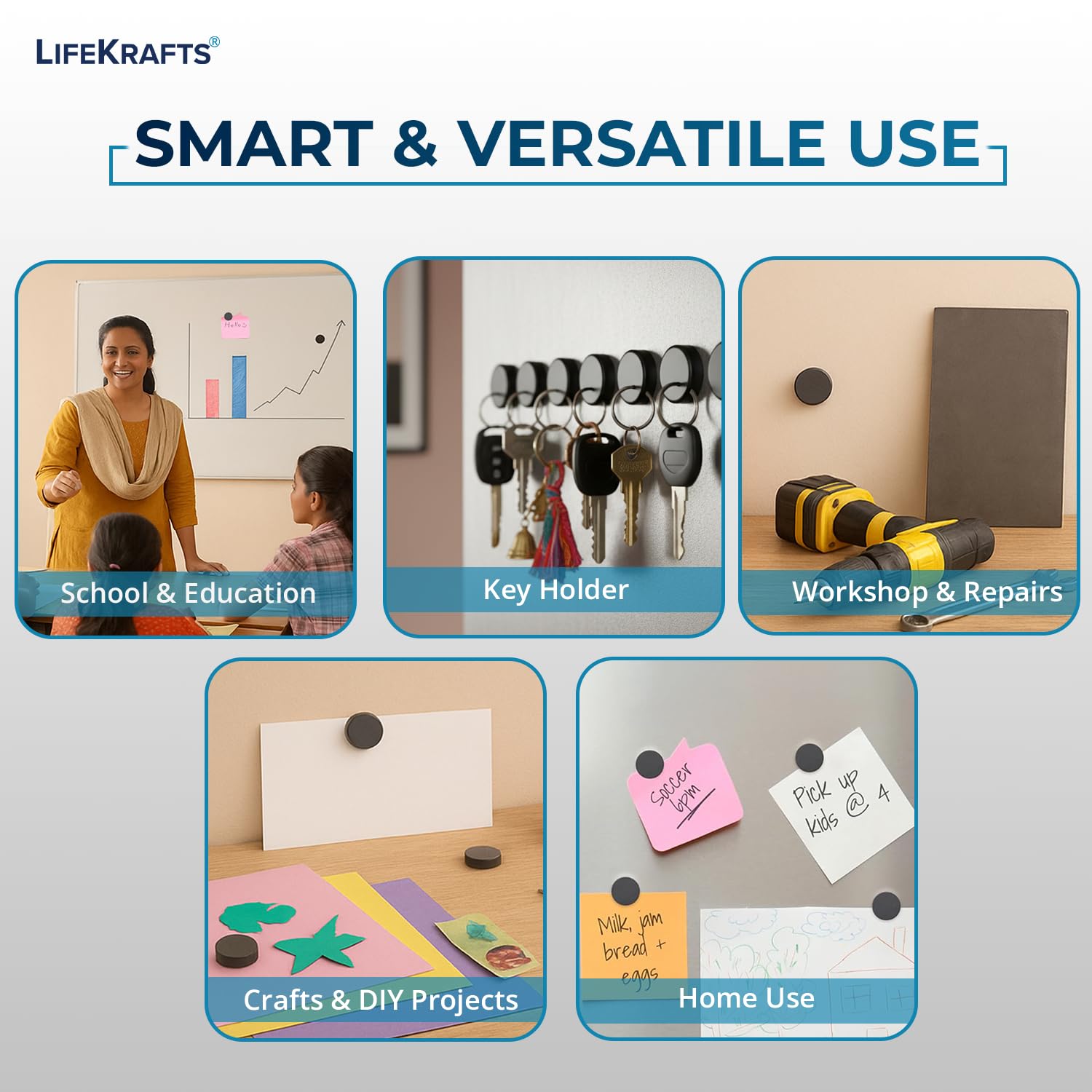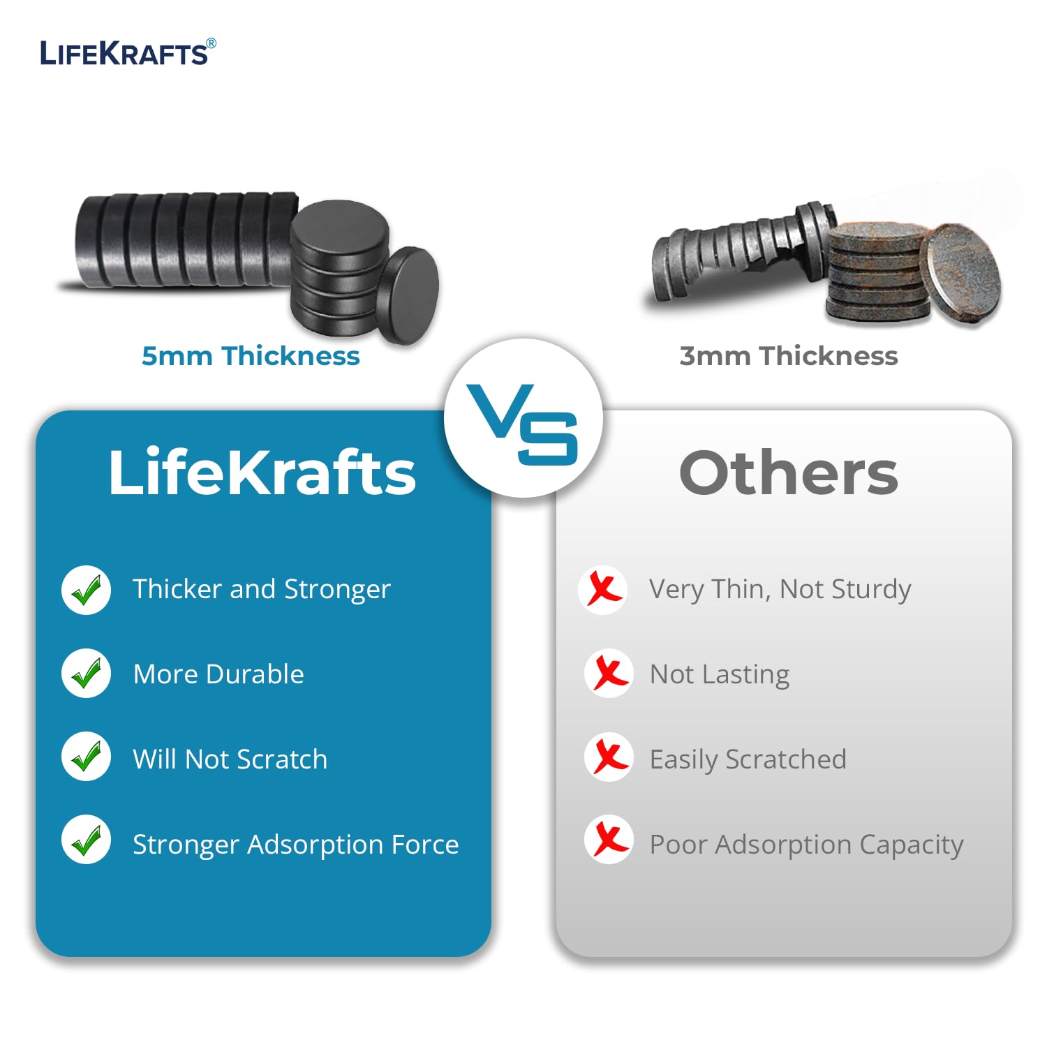 Strong and Reliable Magnets!I recently purchased the LifeKrafts Ceramic Magnets, and I’m very pleased with their performance!Magnetic Strength: These Grade 11 magnets are surprisingly strong for their size. They securely hold multiple papers and photos on my refrigerator without slipping or falling, which is exactly what I needed.Size: The 18×5 mm size is perfect for various uses, from organizing notes to displaying artwork. They’re compact yet powerful, making them versatile for any magnetic surface.Quality: The ceramic material feels durable and well-made. I’ve used them daily, and they show no signs of wear or loss of magnetism.Value for Money: With a pack of 10, they offer great value. I appreciate having extras on hand for different projects around the house.Aesthetics: Their simple design blends well with my kitchen decor, and they don’t detract from the items I’m displaying.Overall, I highly recommend the LifeKrafts Ceramic Magnets for anyone in need of reliable, strong magnets for home or office use. They’re a fantastic addition to any magnetic surface!