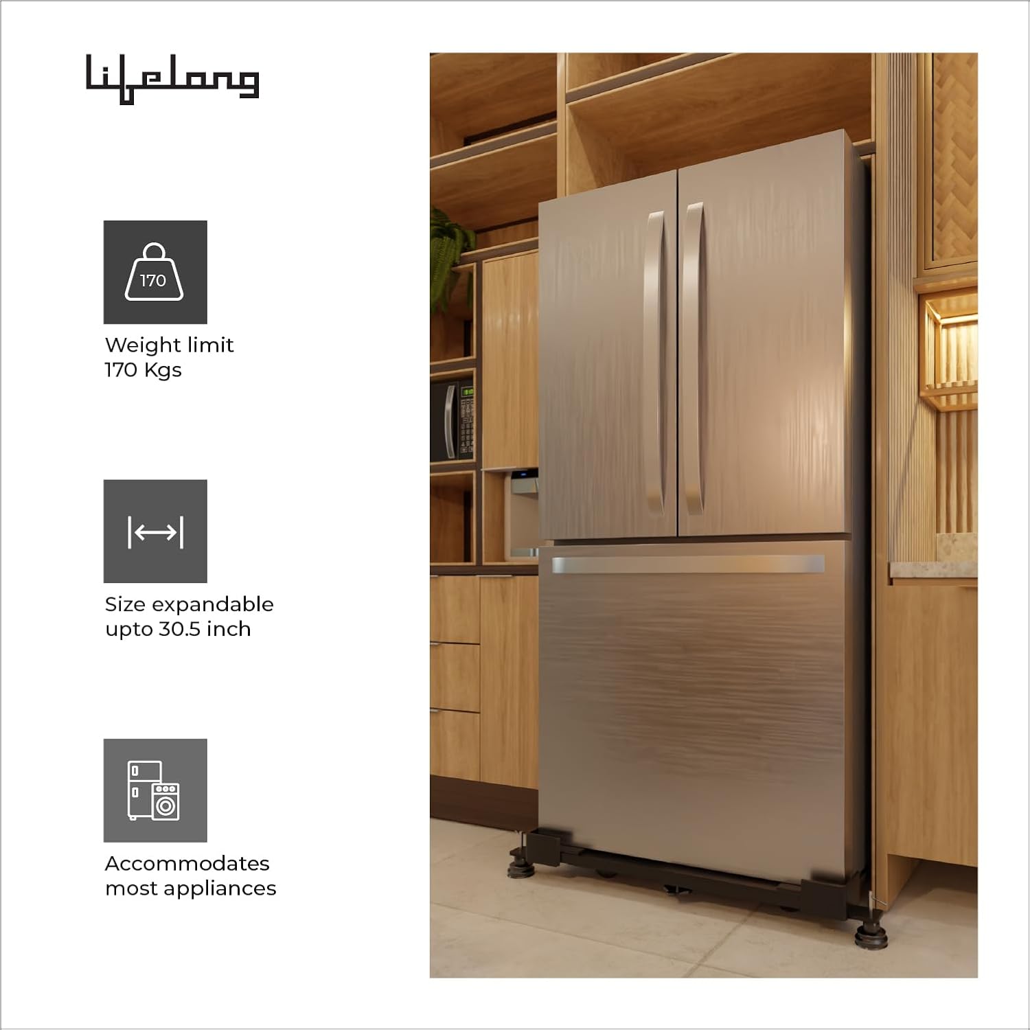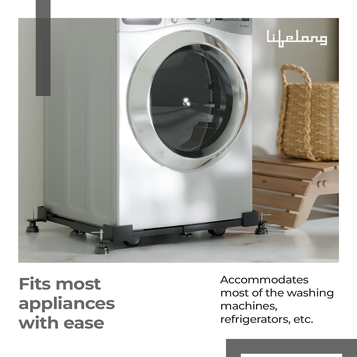 UNIVERSAL STAND: This sturdy Lifelong Metal Stand comes with versatile adoption which can be used as Washing Machine Stand, Coller Stand, Single Door Fridge Stand, Double Door Fridge Stand, Dishwasher Stand or any other machine / furniture at home.