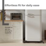 The primary structure of the stand comprises steel, with a weight capacity of up to 170 Kg, and it is simple to put together. It is a size-flexible item designed to fit most appliance sizes.