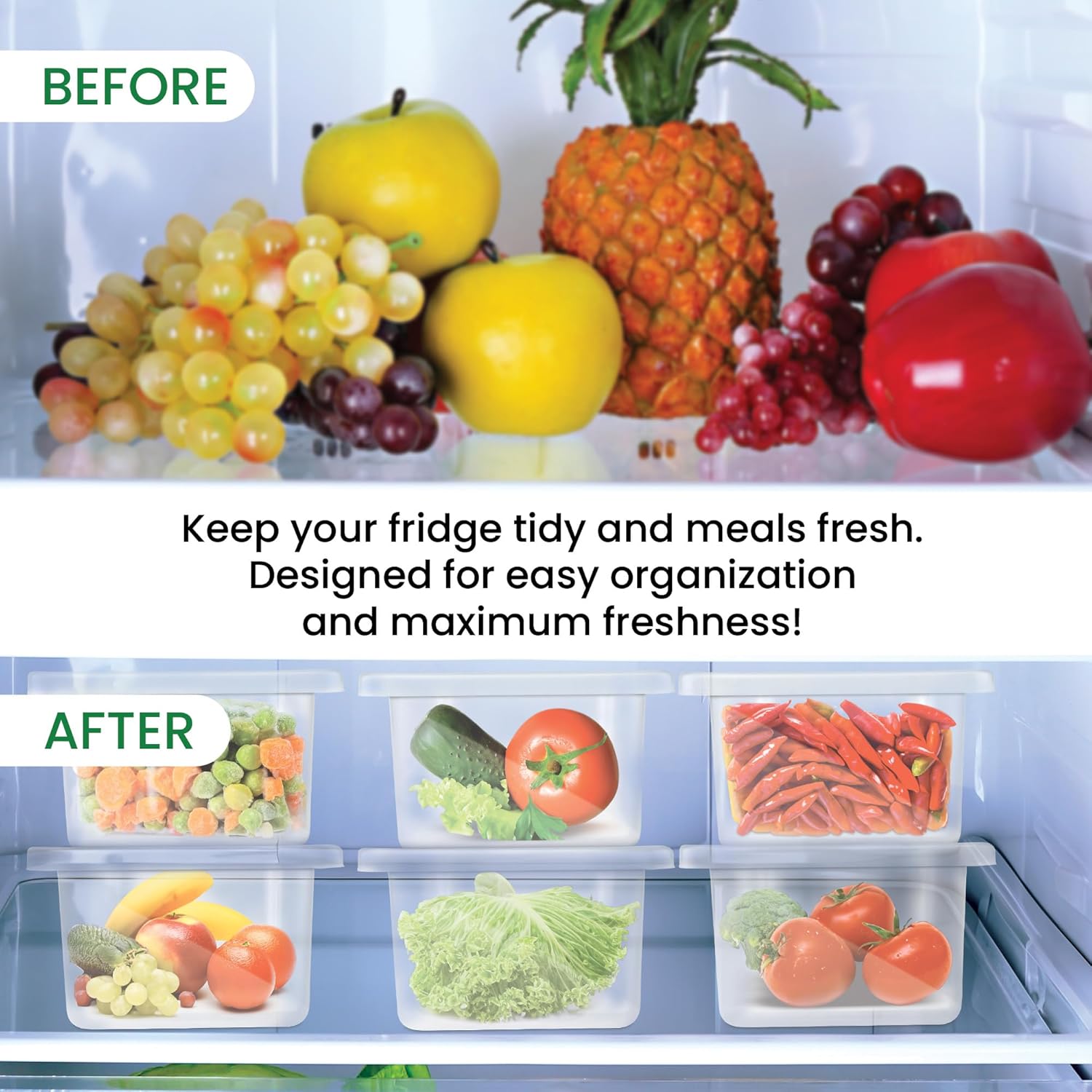Secure-Sealing Lids: Keep your food fresh and your fridge mess-free with fridge storage boxes. Designed to lock in freshness, prevent spills, and block unwanted odors, these handy, stackable containers make organizing your fridge, kitchen, and pantry a breeze.