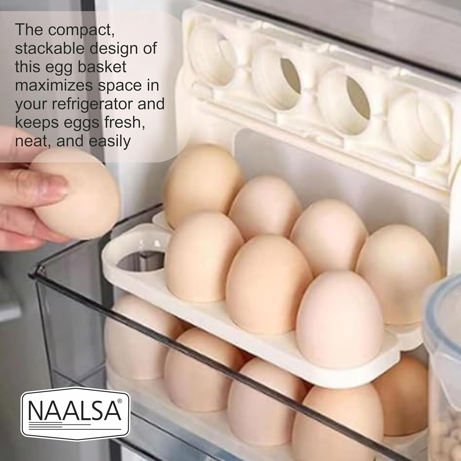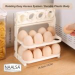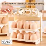 NAALSA SUNNY Egg tray for fridge, 24 Eggs Capacity, 3-Layer Stackable Organizer, Foldable Design, egg box, egg basket, egg holder (IVORY COLOR)