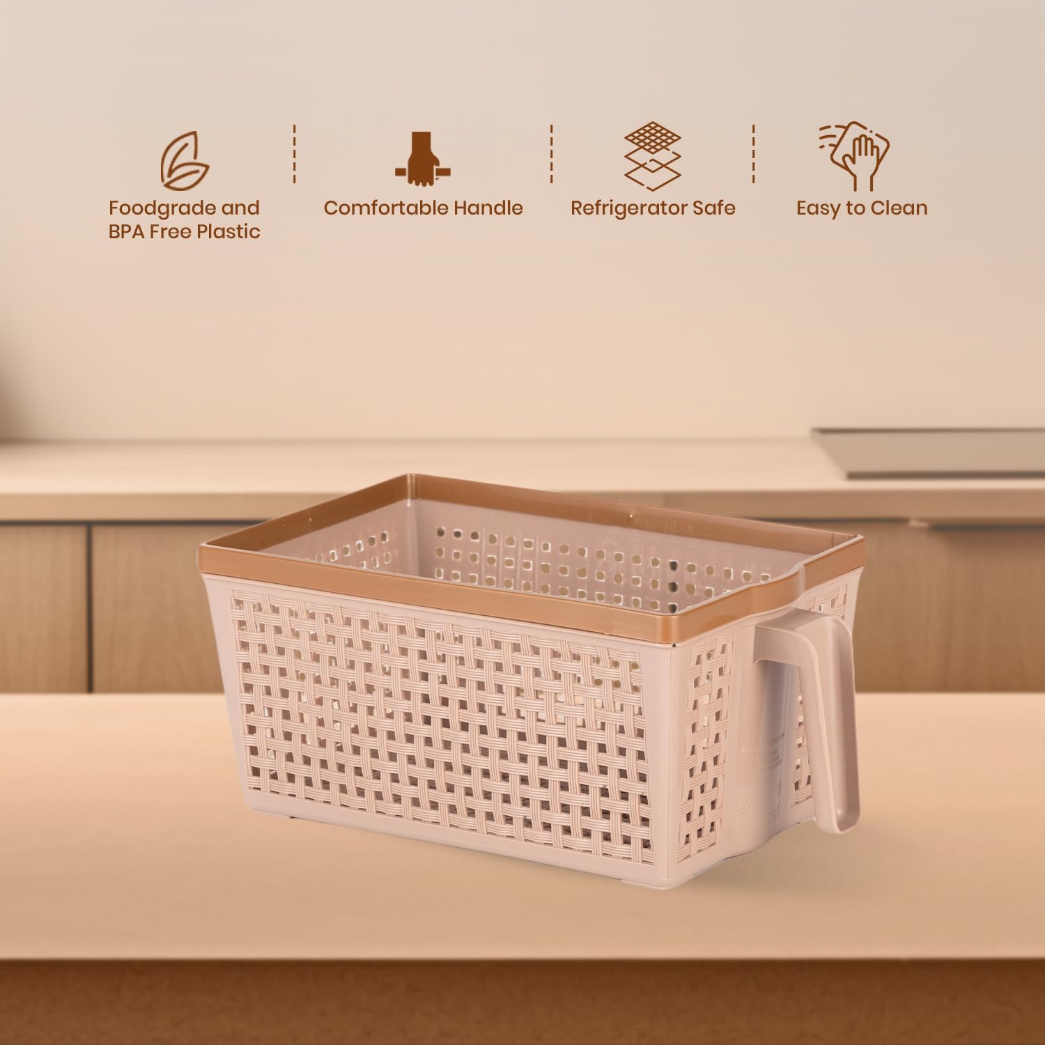Nayasa Frill Fruit Basket for Dining Table & Fridge | Multipurpose Basket for Storage | Storage and Organisers | Ideal for Kitchen, Fridge & Dining Table | 6 Litre | Beige