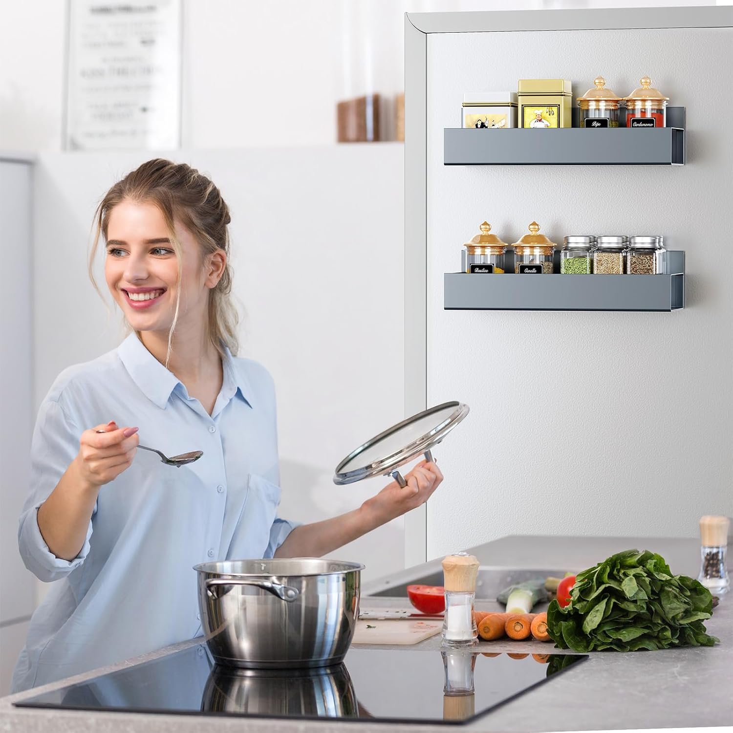Maximize Your Kitchen Space: Magnetic fridge organizers offer an ideal solution for limited space, freeing up valuable counter space while keeping everything neat and tidy. These space-saving wonders are perfect for organizing items on the side of your fridge.