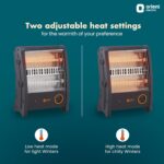 Two heat settings for customized warmth level: The room heater is equipped with two heat settings that can be easily customized using the temperature knob. Set your room heater to 400W during light winters and 800W during chilly winters to stay comfortable throughout the season