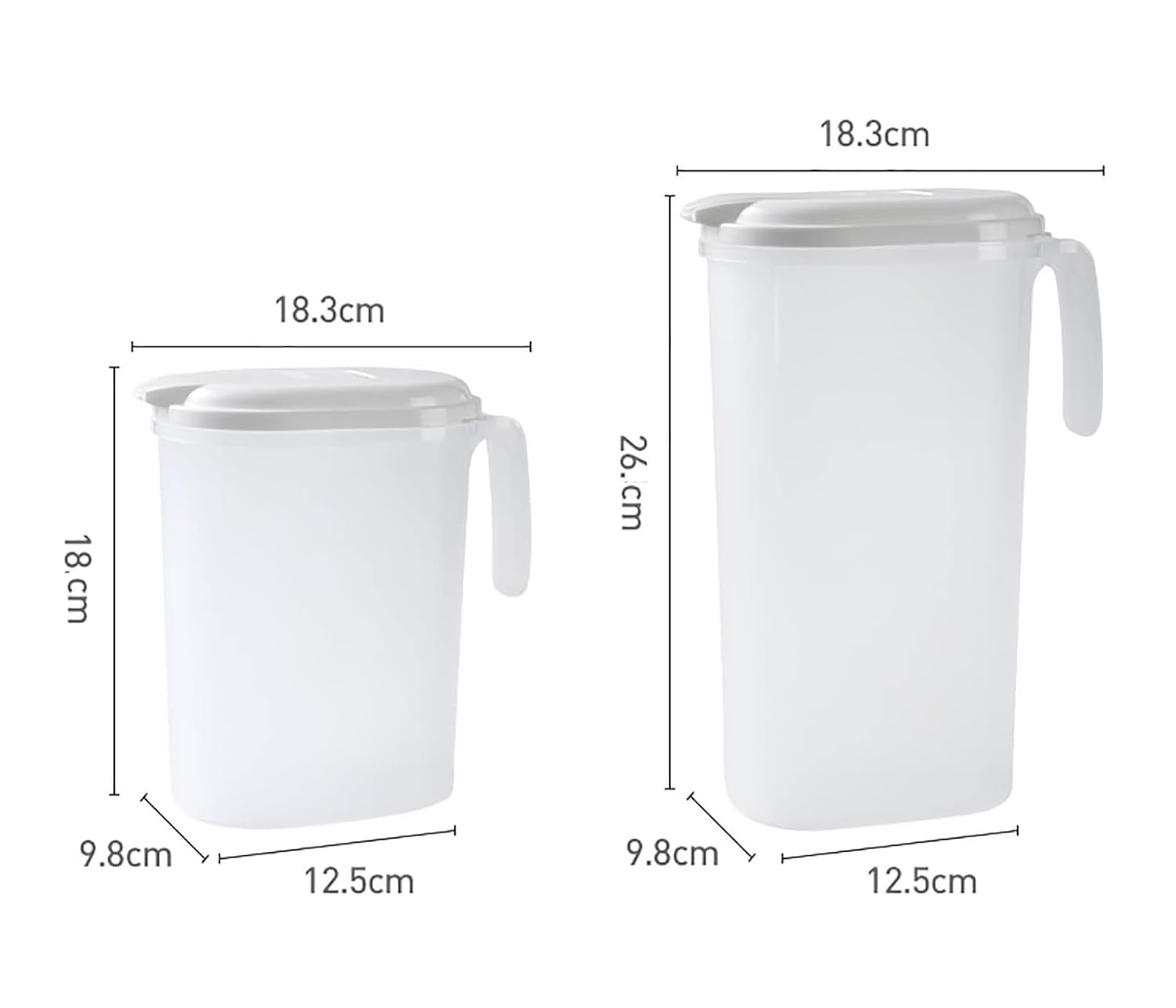 The set includes two jugs of different capacities – 1600 ml and 2200 ml, allowing you to choose the appropriate size for your needs.This jug has a capacity of 1.6L & 2.2L making it perfect for storing and serving water, juice, and other beverages for a group of people.