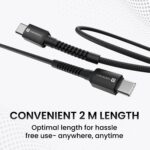 Portronics Konnect X 60W Unbreakable Nylon Braided Cable, 2M Fast Charging Cable For iPhone 15 Series, iPad, Samsung Galaxy (Black)