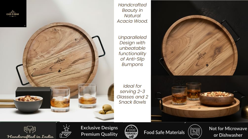 High-Quality Materials: Crafted from premium solid acacia wood, this serving tray boasts durability and a luxurious mahogany finish, ensuring a touch of sophistication to any setting.