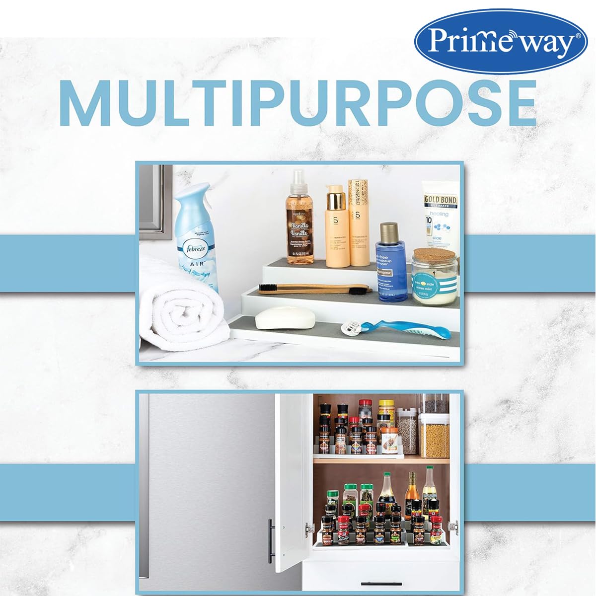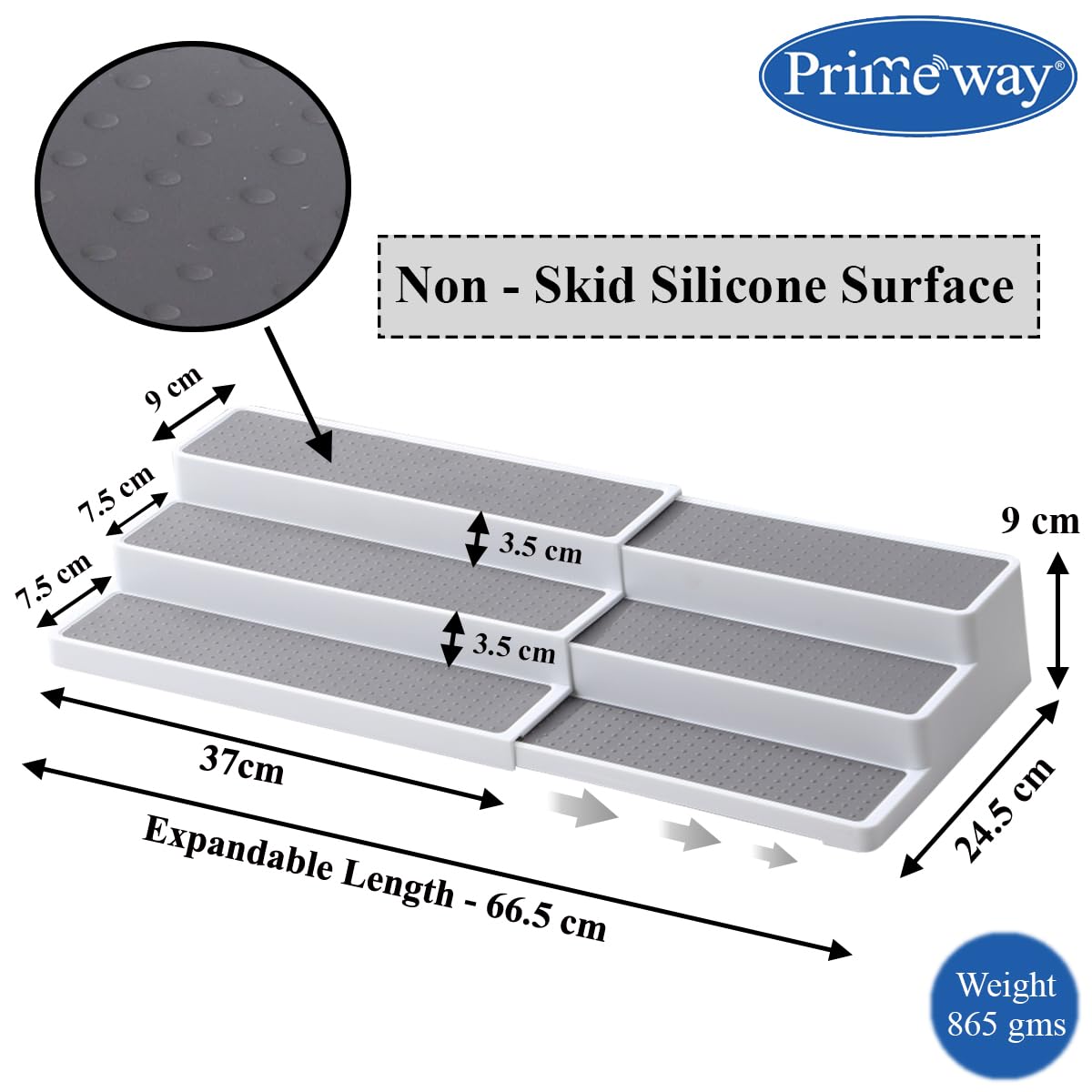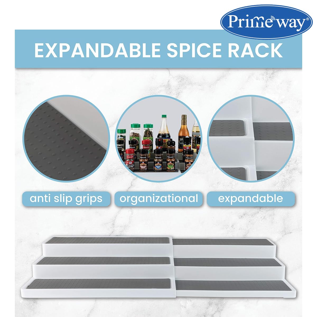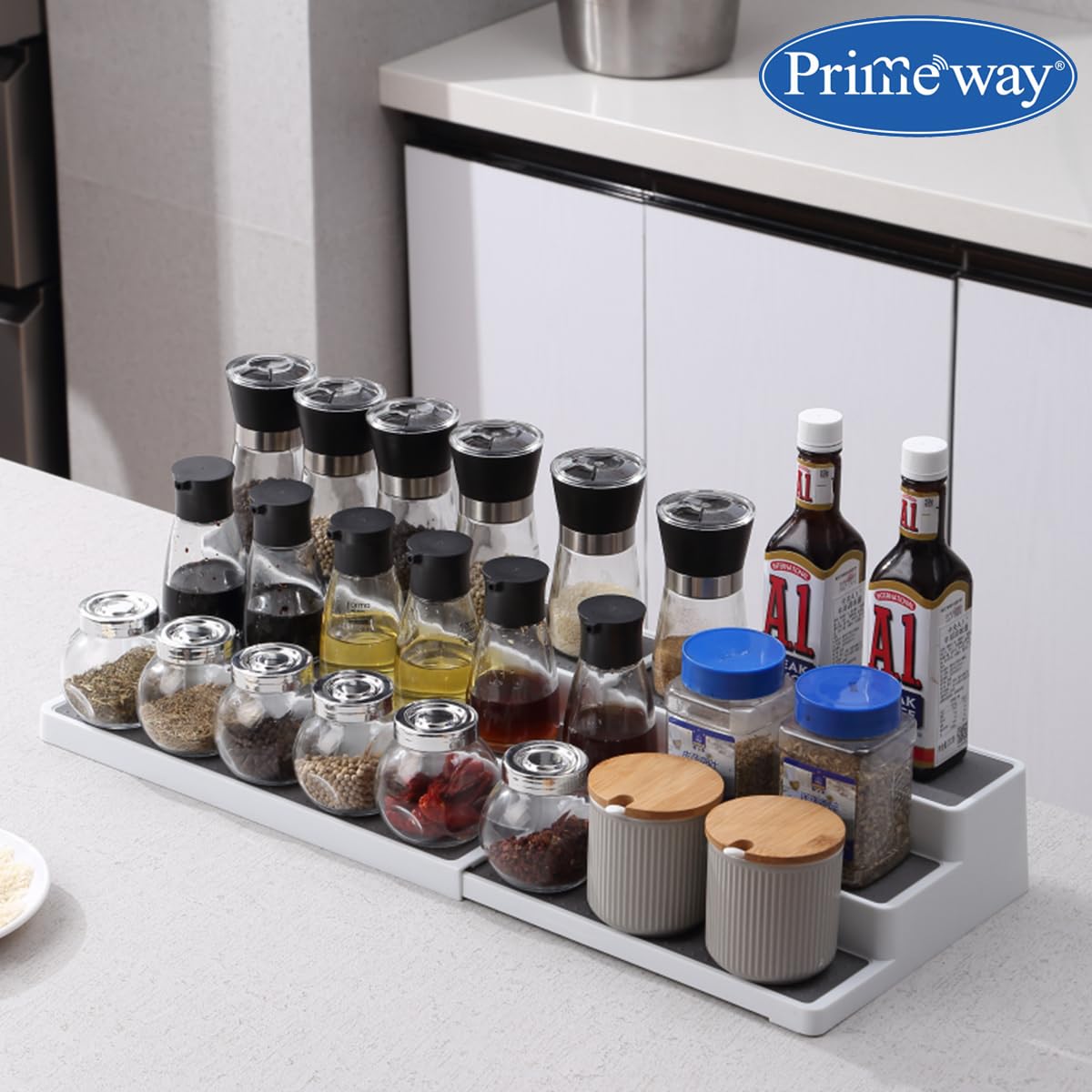 Primeway® Plastic Tpr 3 Tier 26″ Length Countertop Expandable Spice Rack | Non Skid Tiered Shelf Kitchen Organizer | Cabinet | Fridge | Bathroom Rack | Makeup Stand | Adjustable Length 37~66.5cm