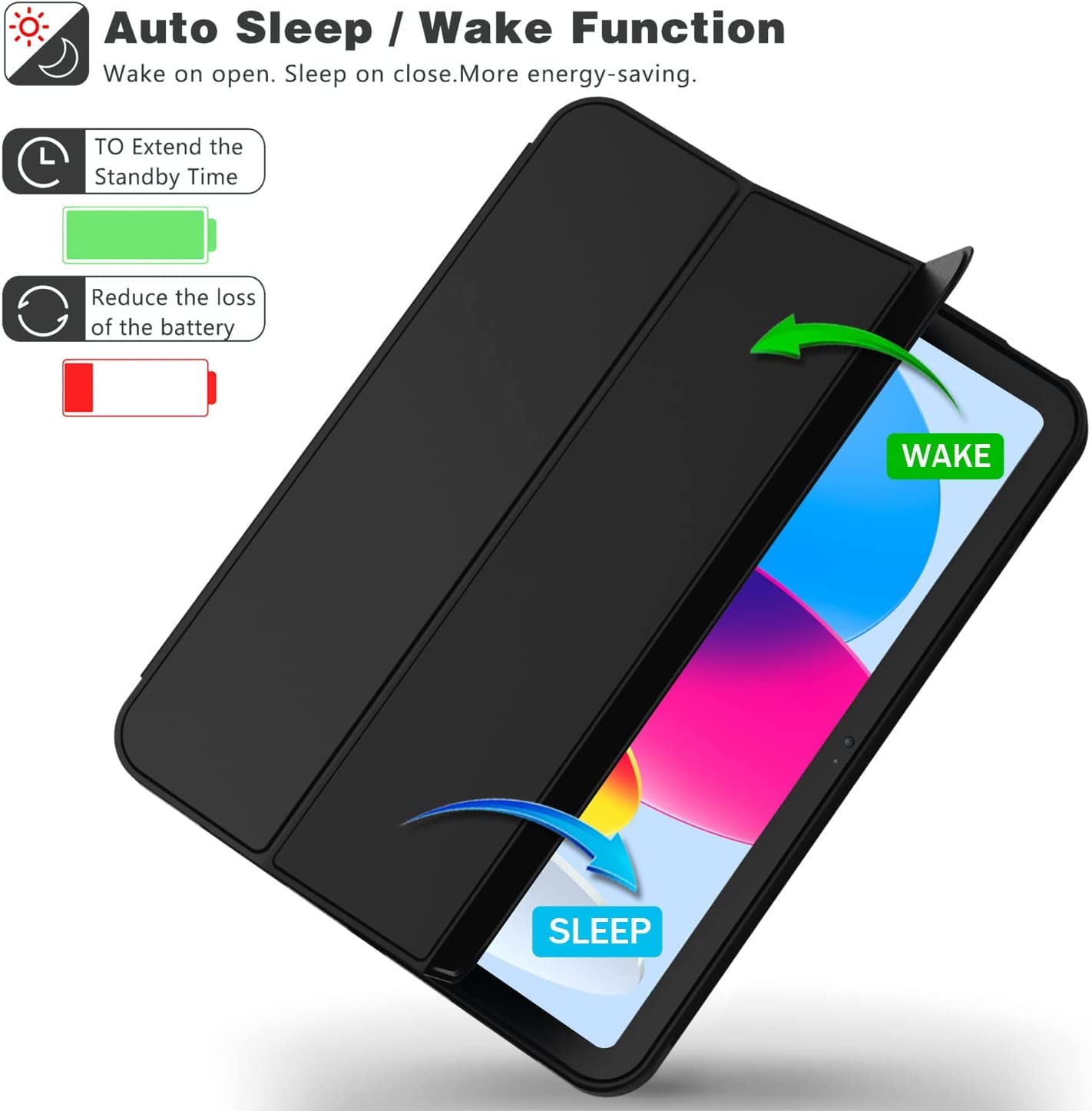 Auto Sleep/Wake Cover: Built-in magnetic strip, our iPad case automatically wakes or puts your tablet to sleep when the lid is opened and closed, protects and extends battery life; Easy access to all features and controls even with the case on