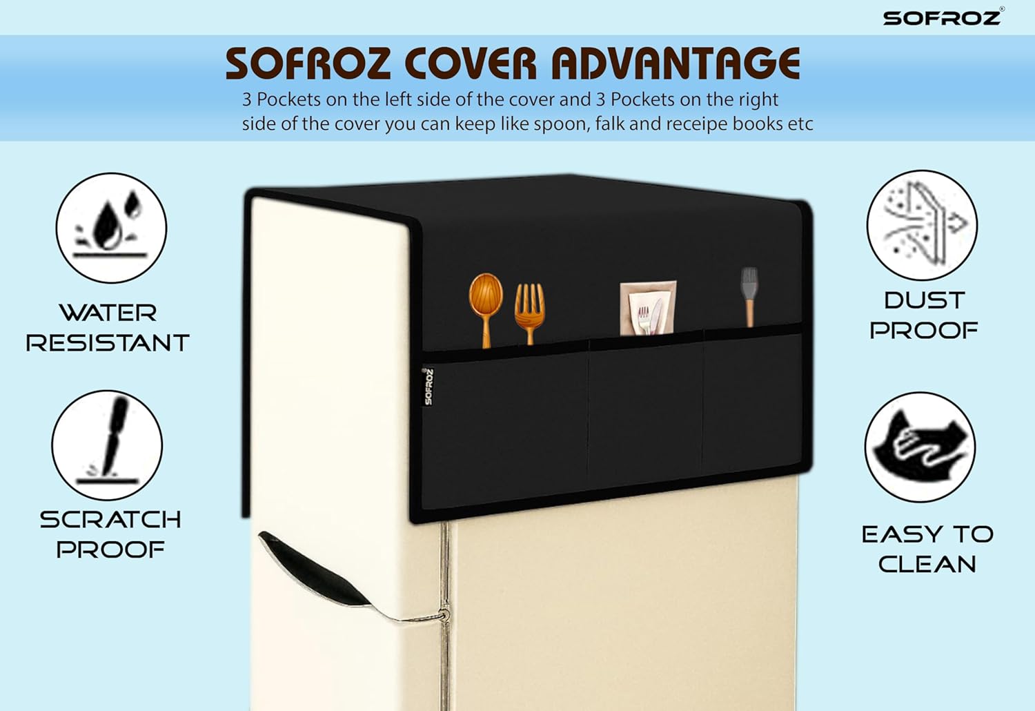Refrigerator Single Door Waterproof, Dustproof, Protective Cover for Fridges with Extra Storage Space Nylon Top Cover with 6 Storage Pockets (130 x 54 cm) (Black)