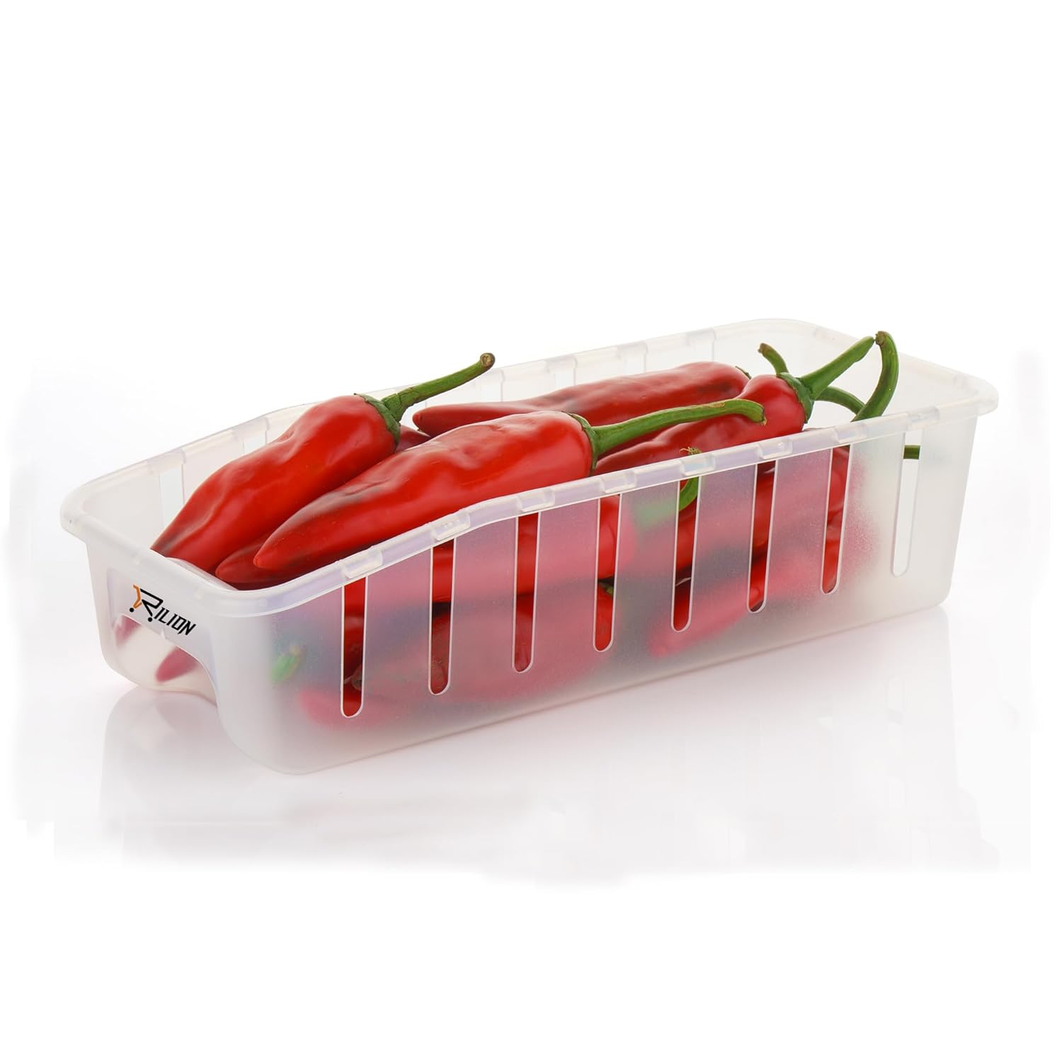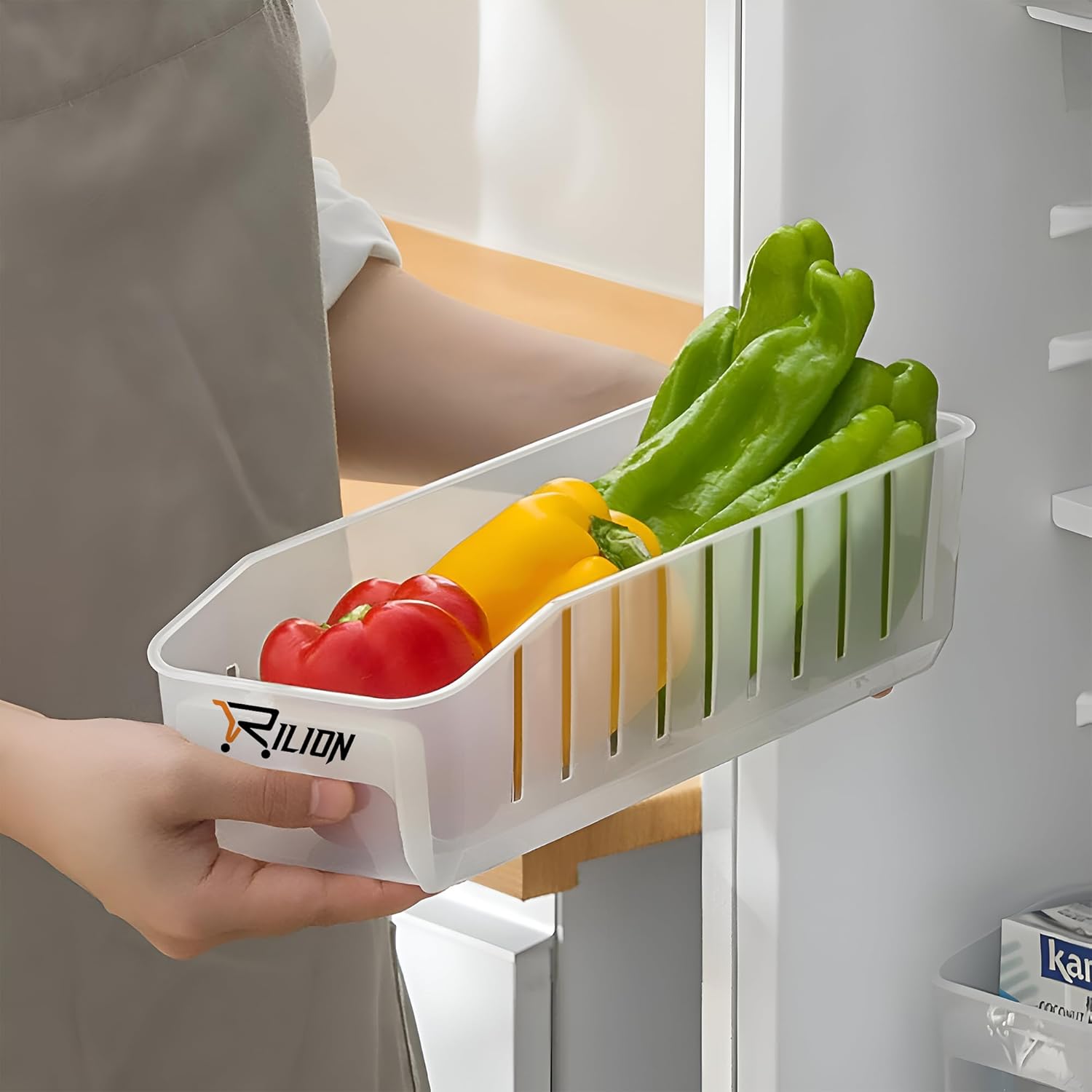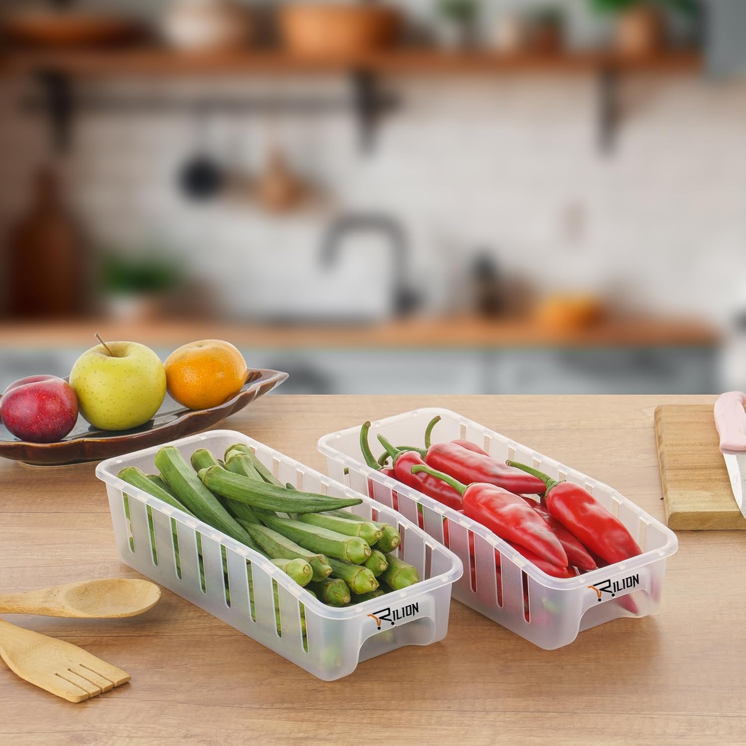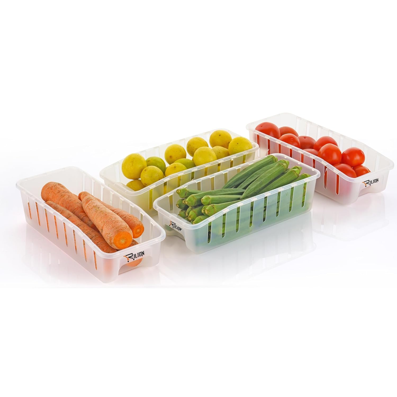 RILION Fridge Storage Containers (Pack of 4) Organizer, Plastic Fridge Storage Organizer Racks, Fridge Storage Boxes Keep Fruits, Vegetables Fresher, Container Box, White