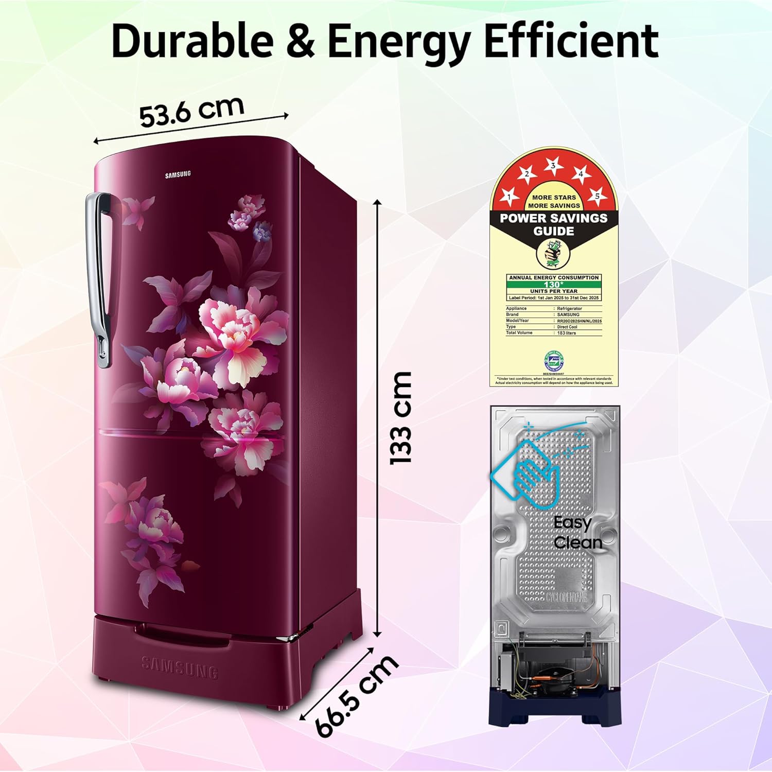 Energy Rating : 5 Star Best in Class Energy Efficiency | Annual Energy Consumption : 130 Kilowatt Hours Per Year