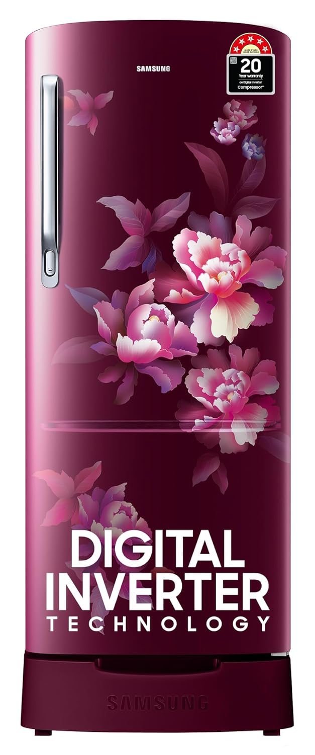 Samsung 183 L, 5 Star, Digital Inverter, Direct-Cool Single Door Refrigerator (RR20D2825HN/NL, Himalaya Poppy Red, Base Stand Drawer)