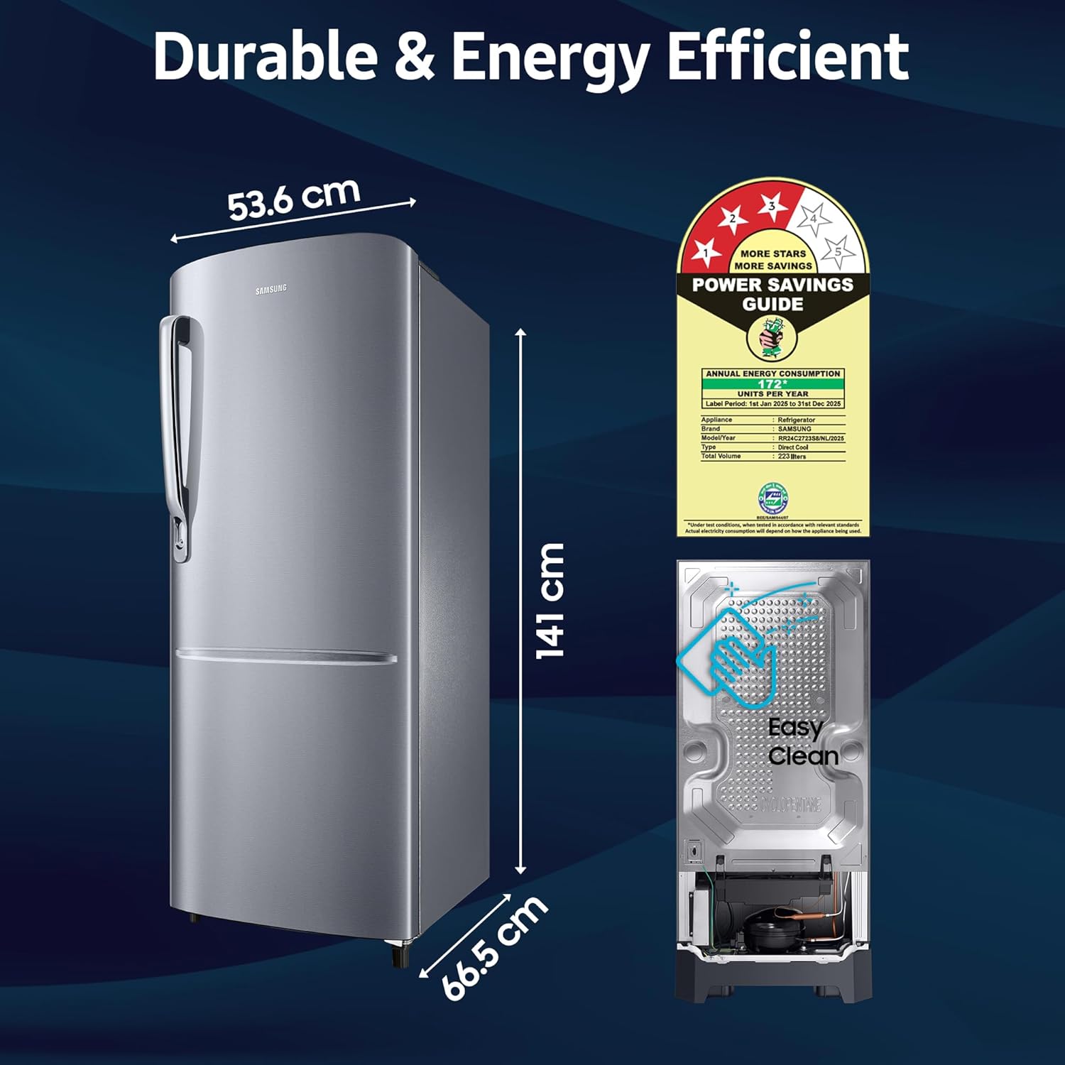Samsung 223 L, 3 Star Inverter Direct-Cool Single Door Refrigerator (RR24C2723S8/NL, Silver, Elegant Inox)