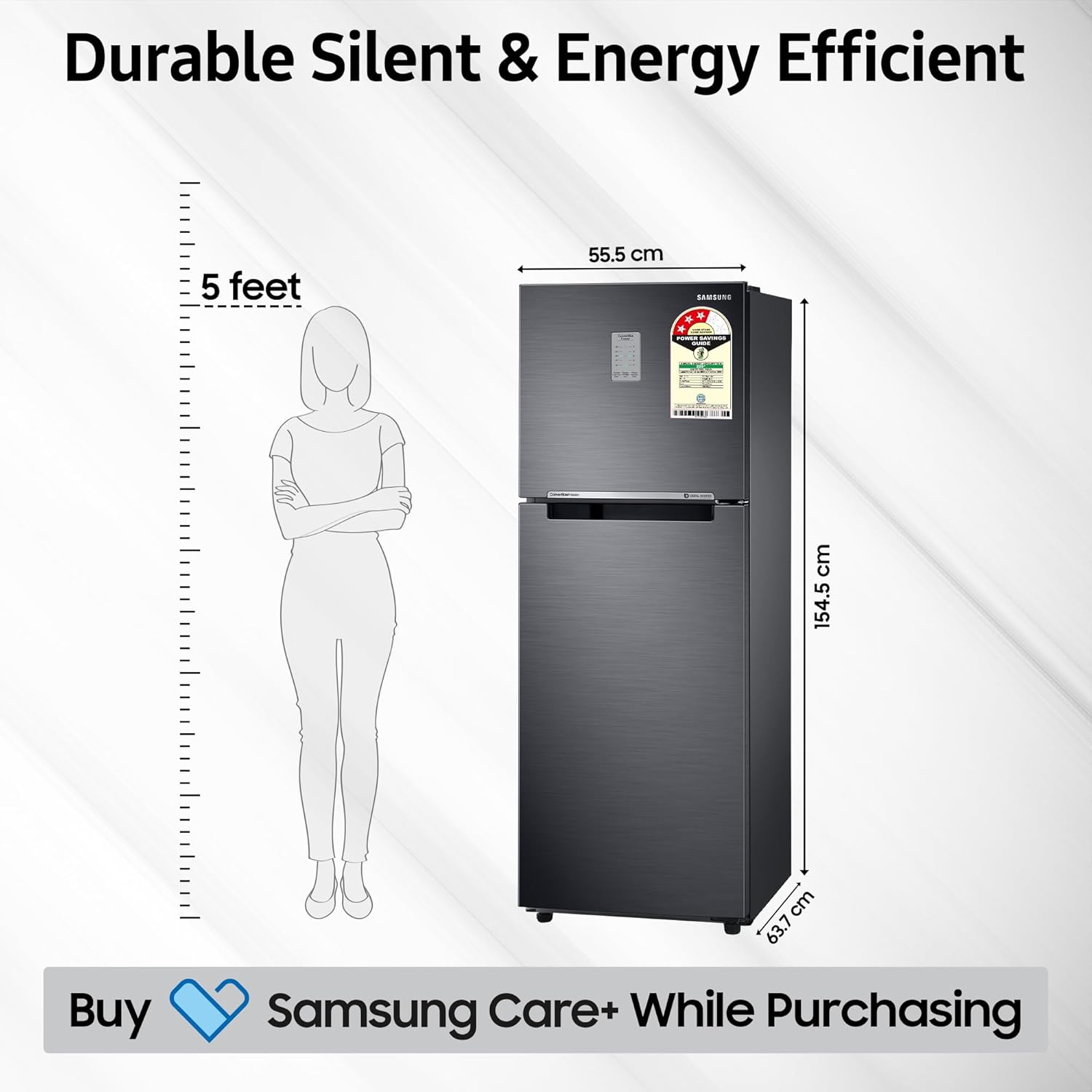 Samsung 236 L, 3 Star, Convertible, Digital Inverter with Display Frost Free Double Door Refrigerator (RT28C3733B1/HL, Black Matte/Black DOI)